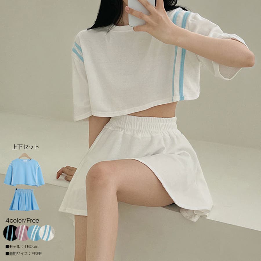 2点セット半袖トップス+ミニスカート Y2K セットアップ クロップド丈 アンサンブル トレーナー スウェット 韓国 夏 アンサンブル 半袖 スウェット上下セット 可愛い レディース ミニスカートset セットアップ 韓国 デイリー 外出 sedo0457