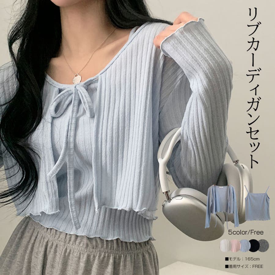 流行りのハイティーンムードのキャミソールカーディガンセットです。