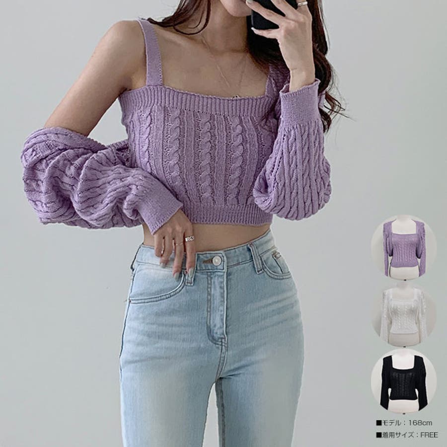 夏から秋にかけて着やすいケーブルニットボレロセット セットアップ レディース Y2K ニット キャミソール+カーディガン 長袖 セットアップ Y2K クロップド丈 ニットセット レディース 夏秋 ニットトップス レディース トップスset カーディガン セットアップ レディース 秋 韓国ファッション へそ出し クロップド丈 カーディガン sedo0492