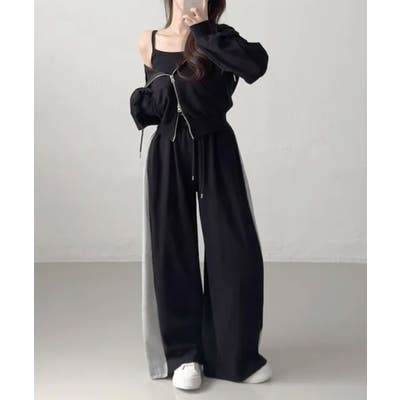 ダブルジップパーカー×キャミ×ワイドパンツ スウェット3点セット