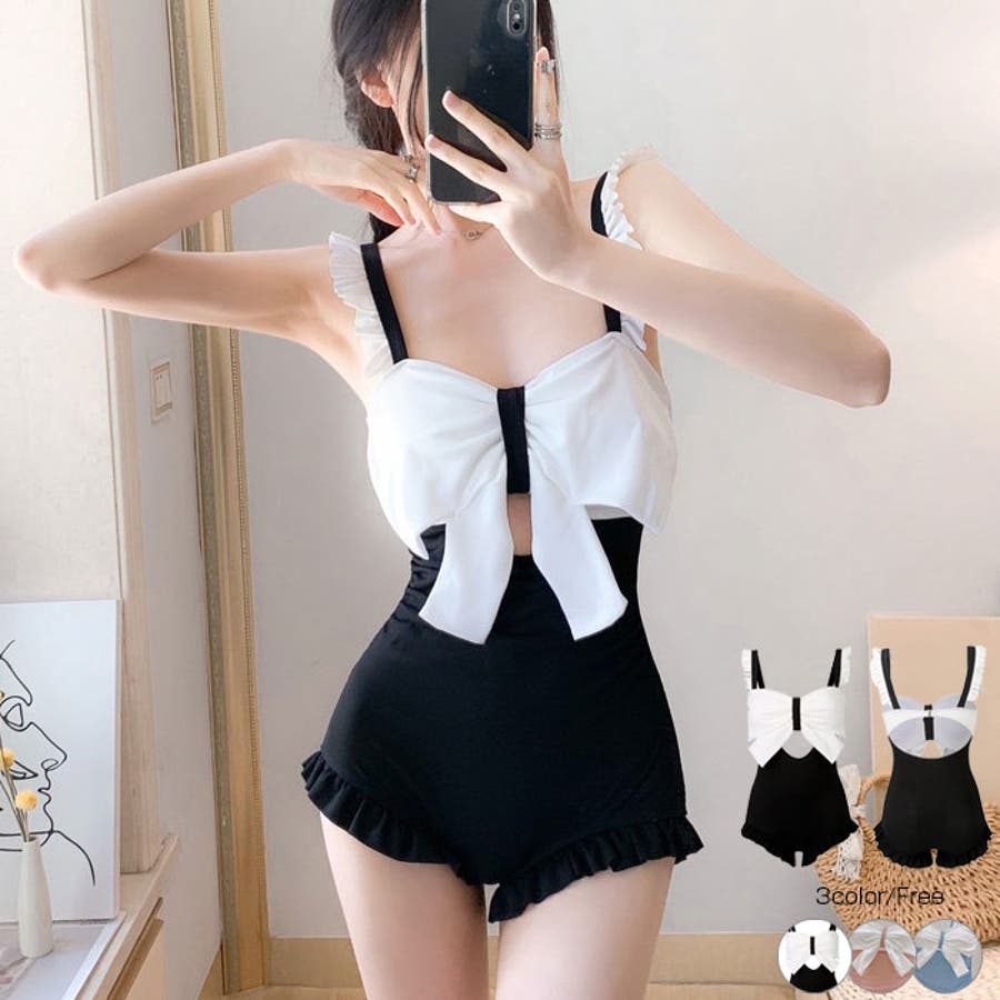 フリルリブリボン水着 モノキニ 夏 韓国 ビキニ レディース S M L 水着 可愛い ビキニ レディース ノンワイヤー 水着 水着 ビキニ 海外 水着 レディース ビキニ 水着 夏 ノンワイヤー水着 ビキニ 水着 レディース ビキニ 黒 水着 モノキニ ホカンス リゾート swch0058