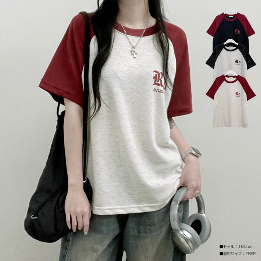 配色ラグラン半袖Tシャツ レディース ブロークコア 夏 ロゴ入り バイカラー tシャツ 韓国 半袖 ゆったり トップス 夏 カットソー デイリー Tシャツ レディース 夏Tシャツ 韓国ファッション ラグラン袖 カットソー 楽ちん 配色 Tシャツ ホワイトメランジ オートミール ネイビー tsds2078