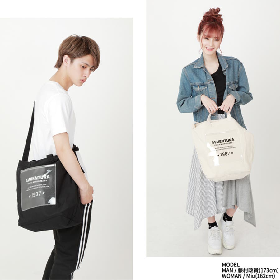 クリアポケット キャンバス ショルダートートバッグ