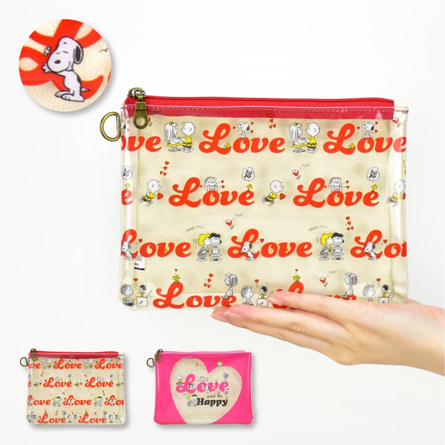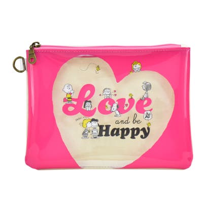 フラットポーチ Love and be Happy スヌーピー