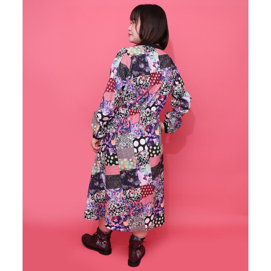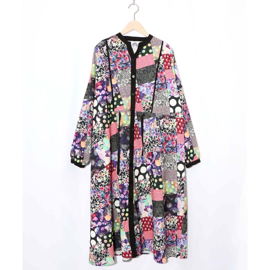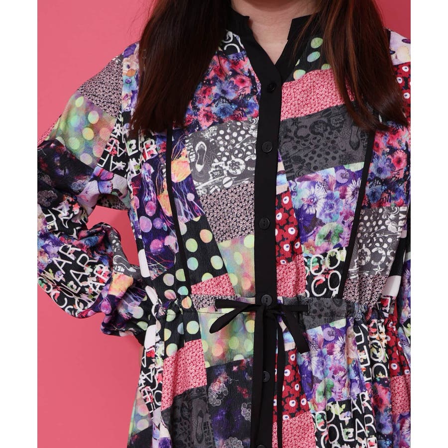 鮮やかでポップな配色が目を惹くドロスト付きシャツワンピース。