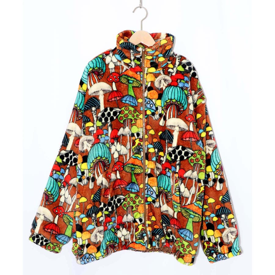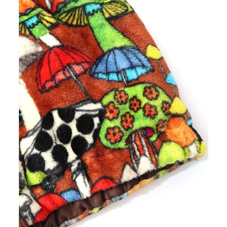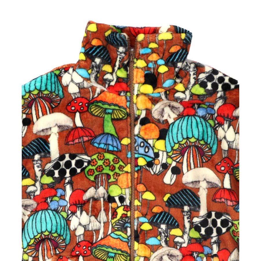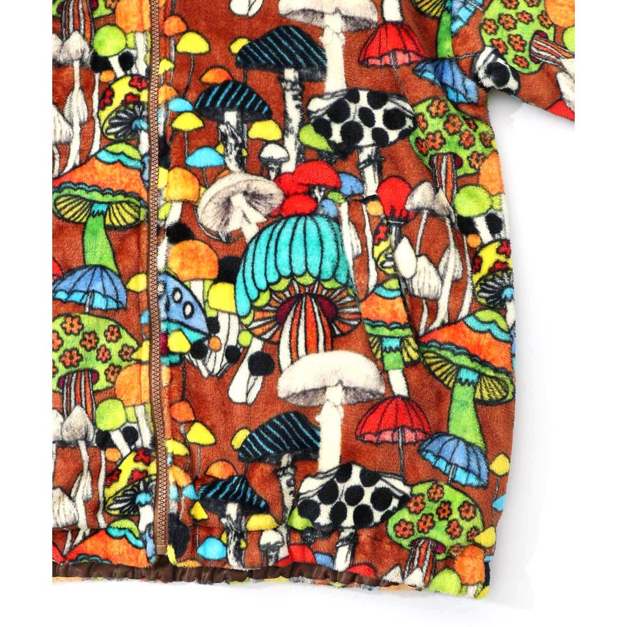 55(ブラウン):キノコがいっぱいのレトロ柄
