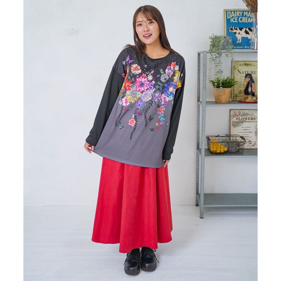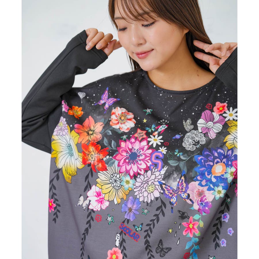 花×夜空柄ミックス裏毛チュニック