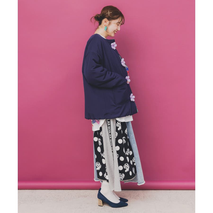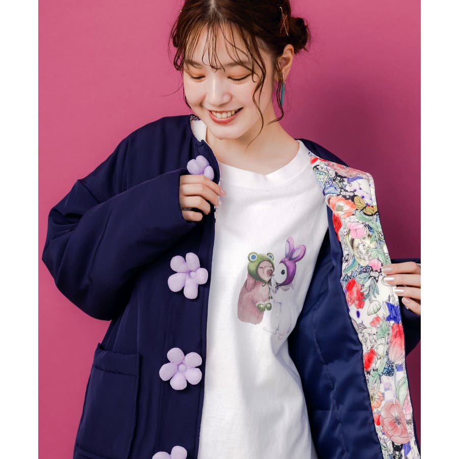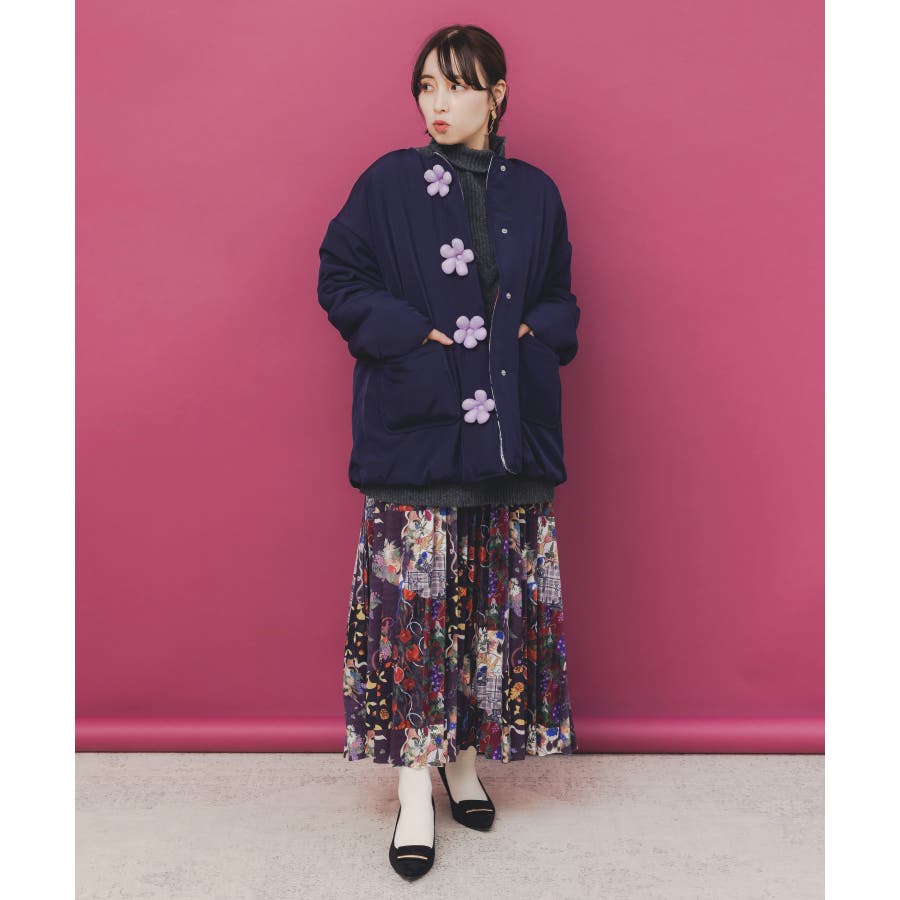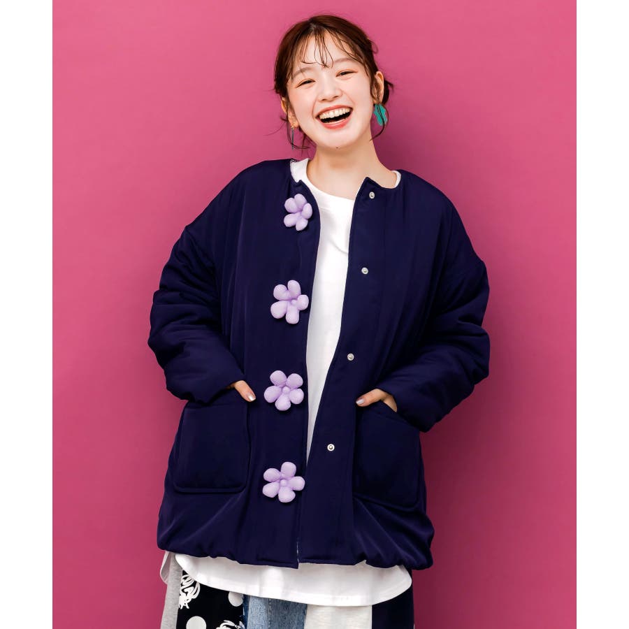 花ボタン中綿アウター