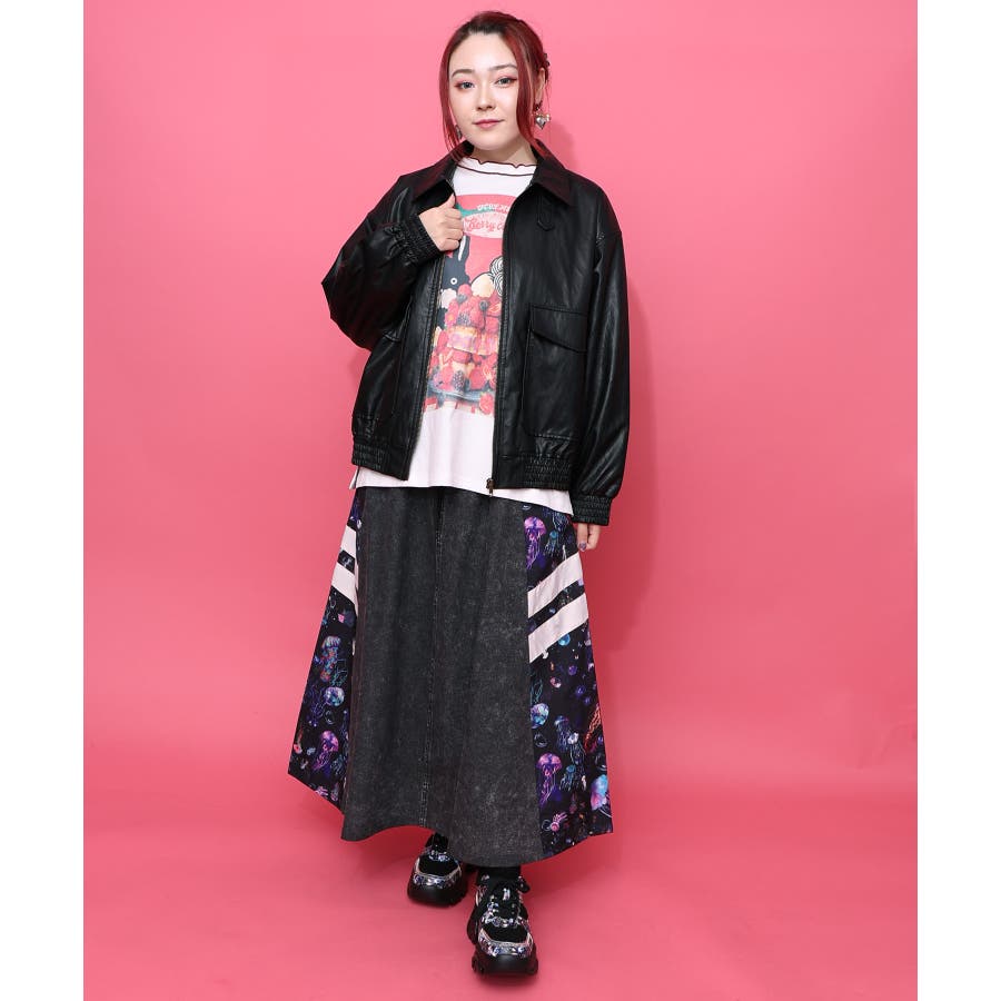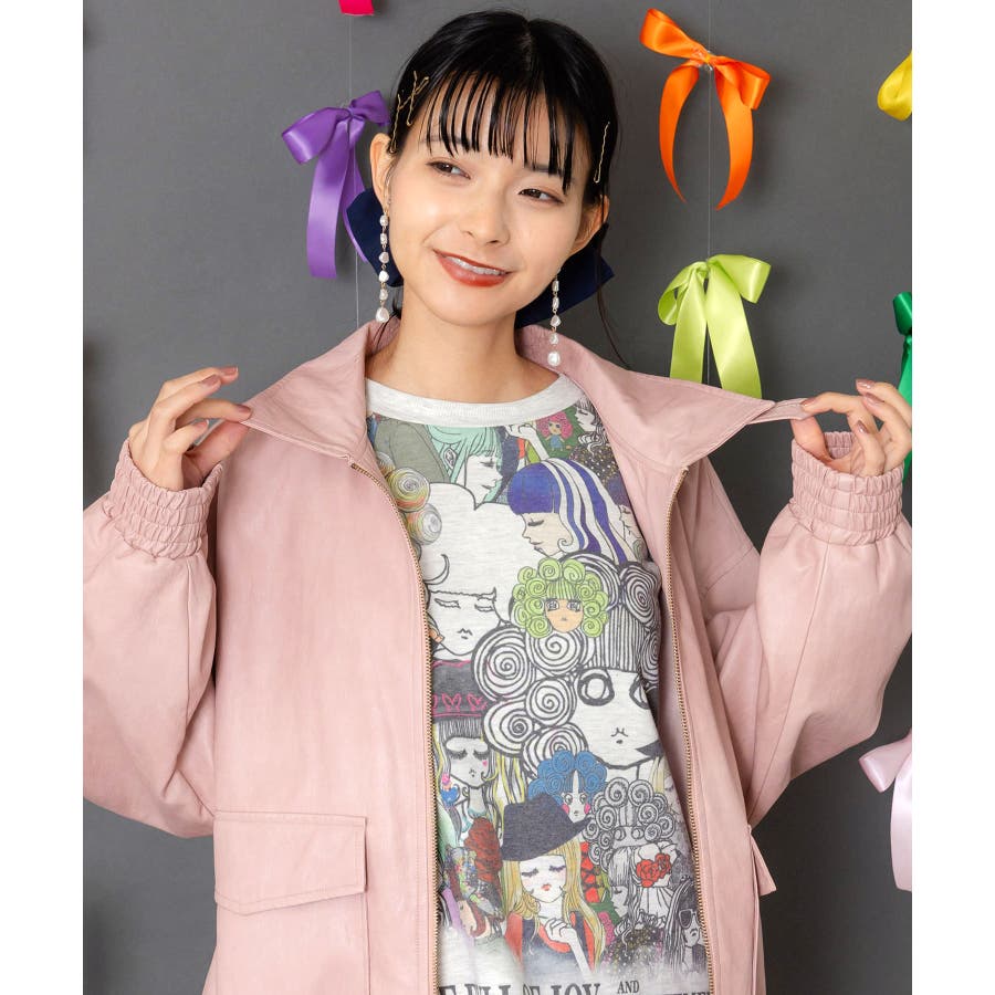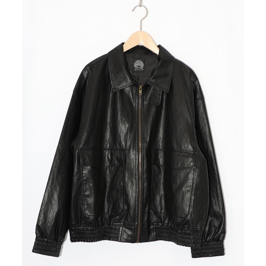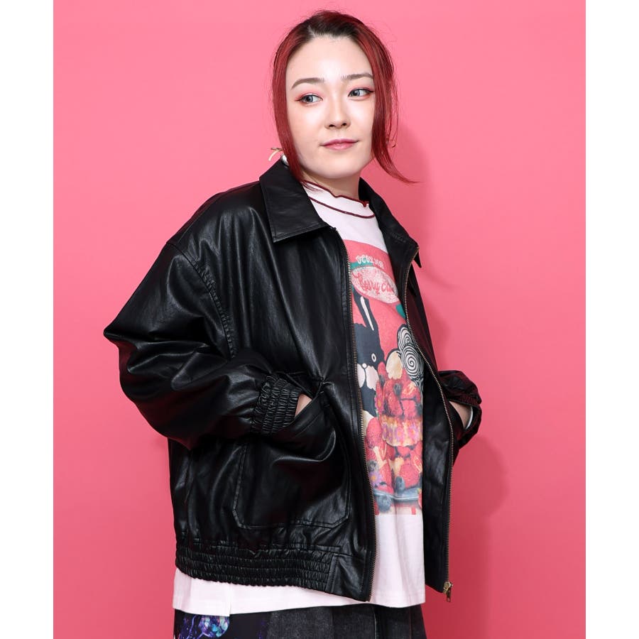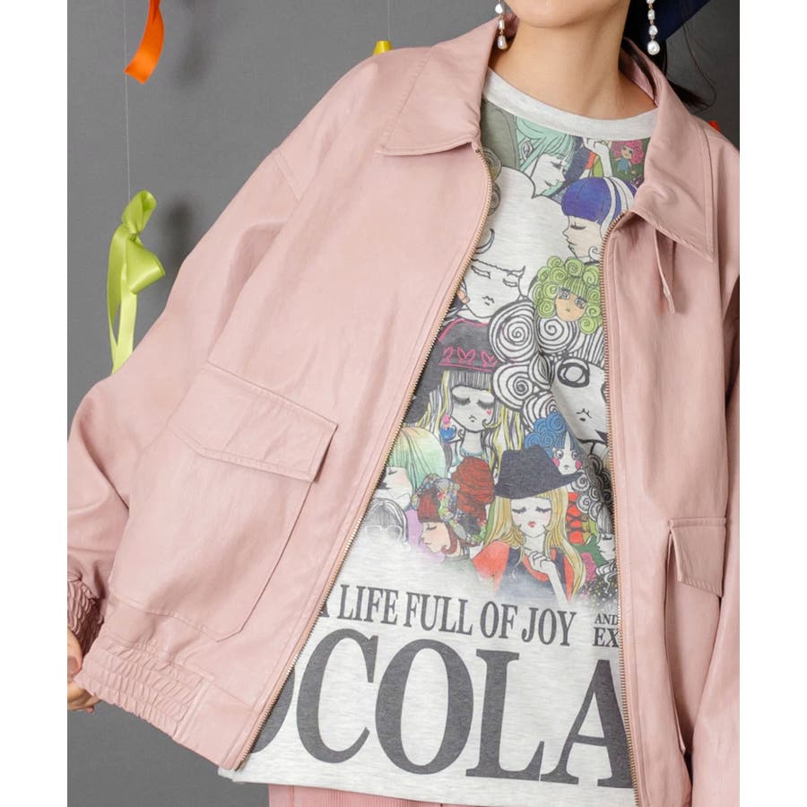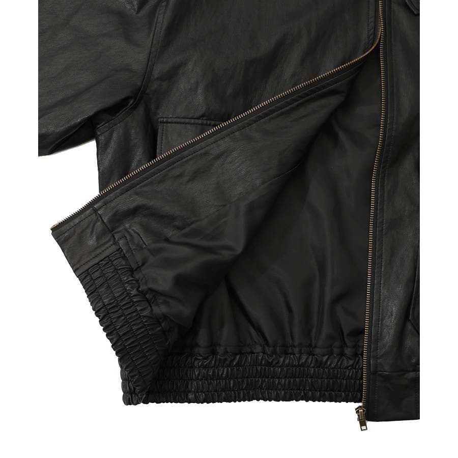 ネコ刺繍フェイクレザー×裏地ブルゾン