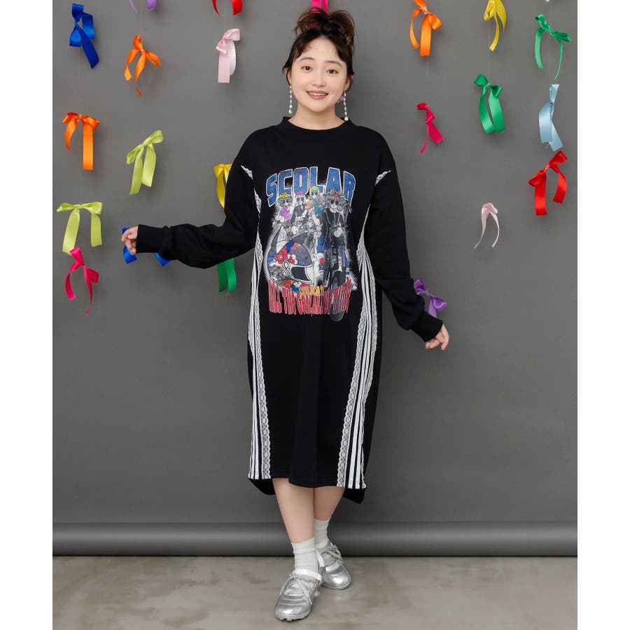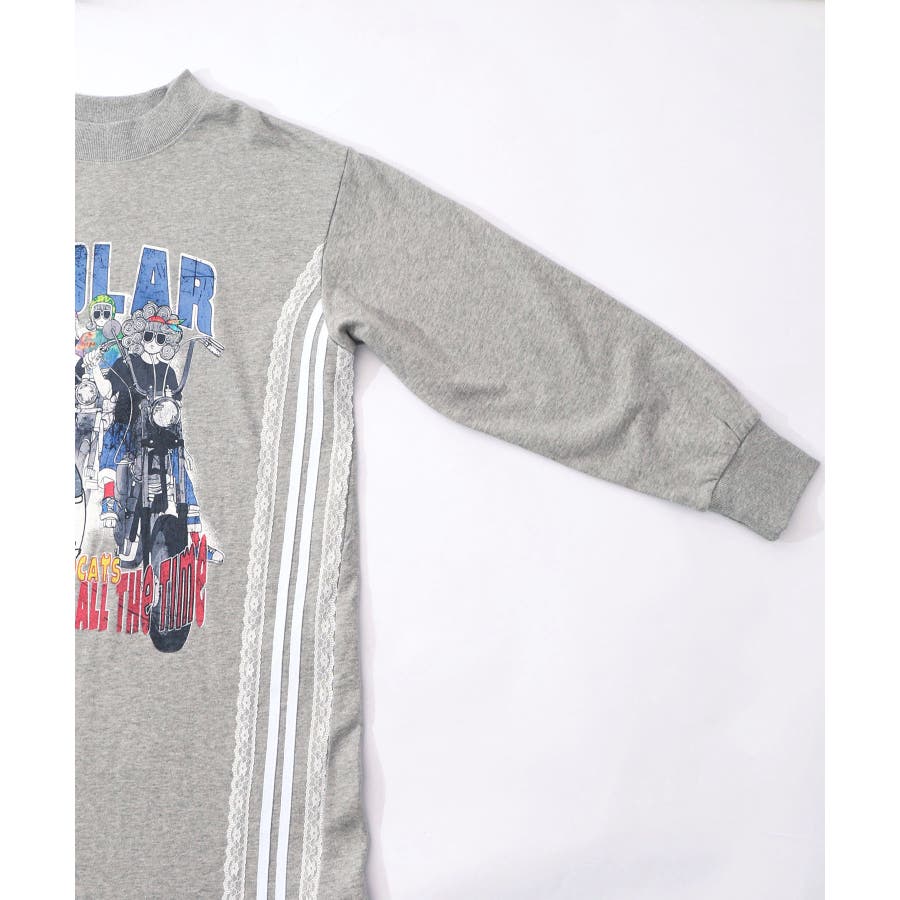 レースライン×ロック柄ミニ裏毛ワンピース