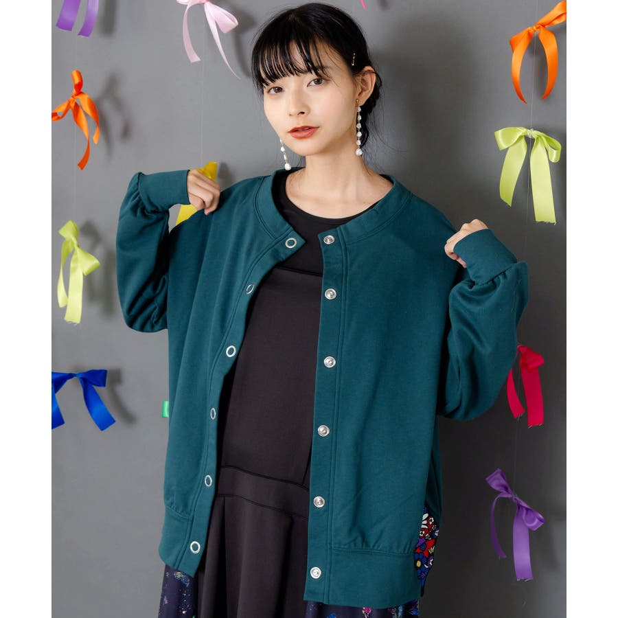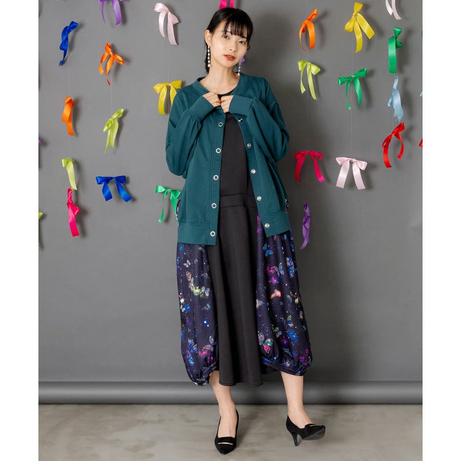 裾蝶刺繍2wayミニ裏毛カーディガン