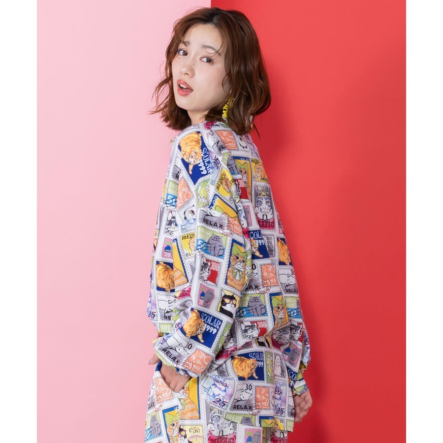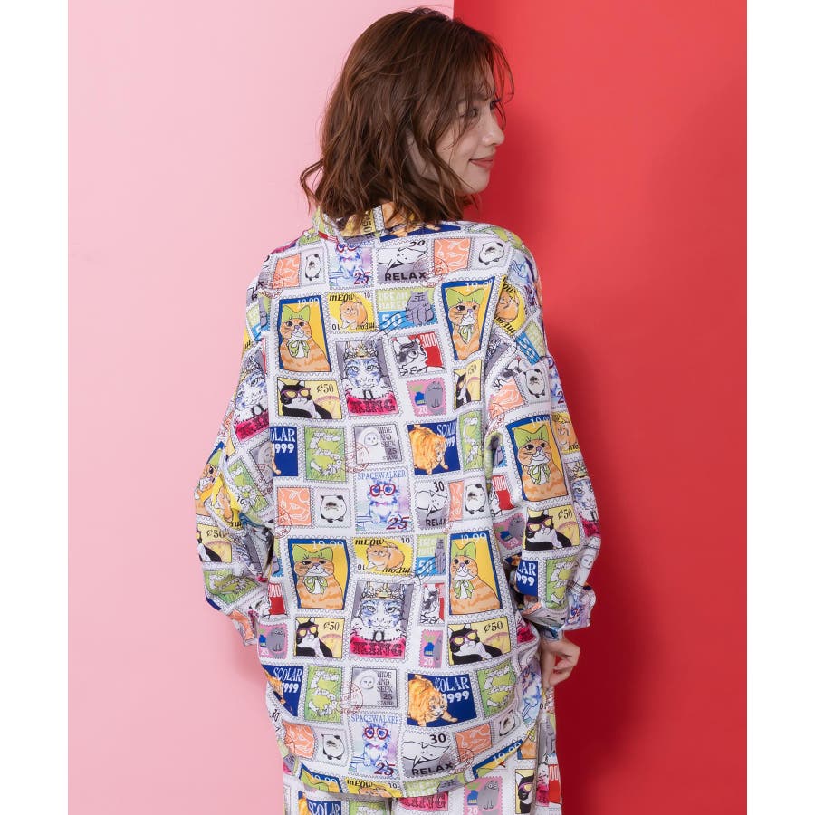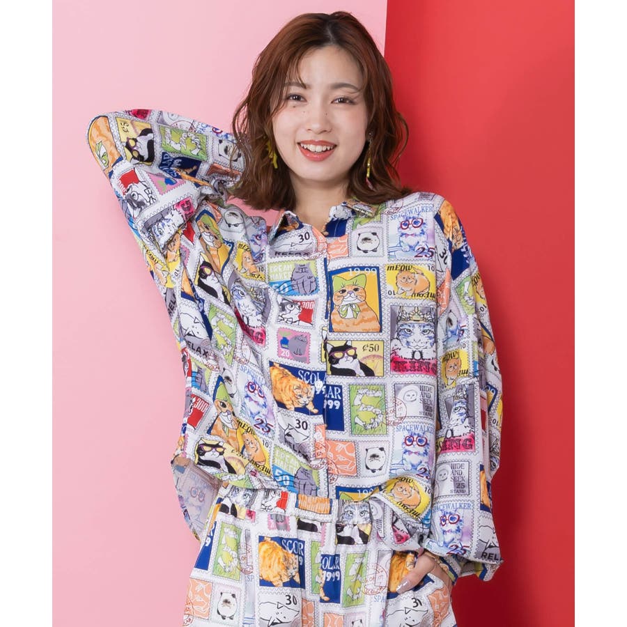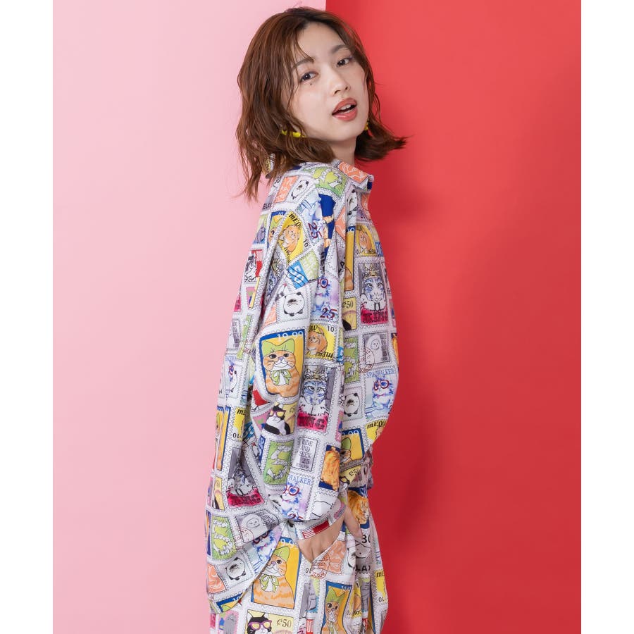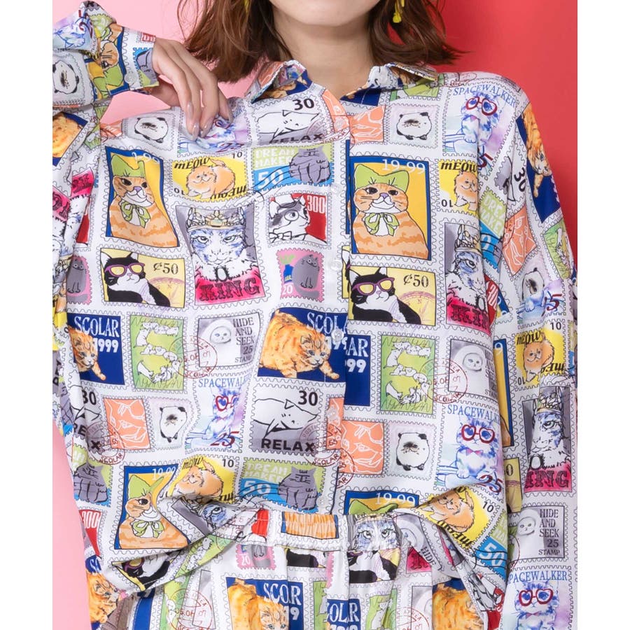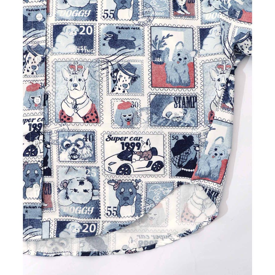 わんorにゃんスタンプ柄 ワッシャーシャツ