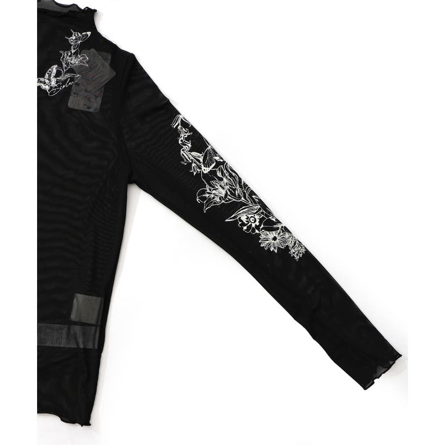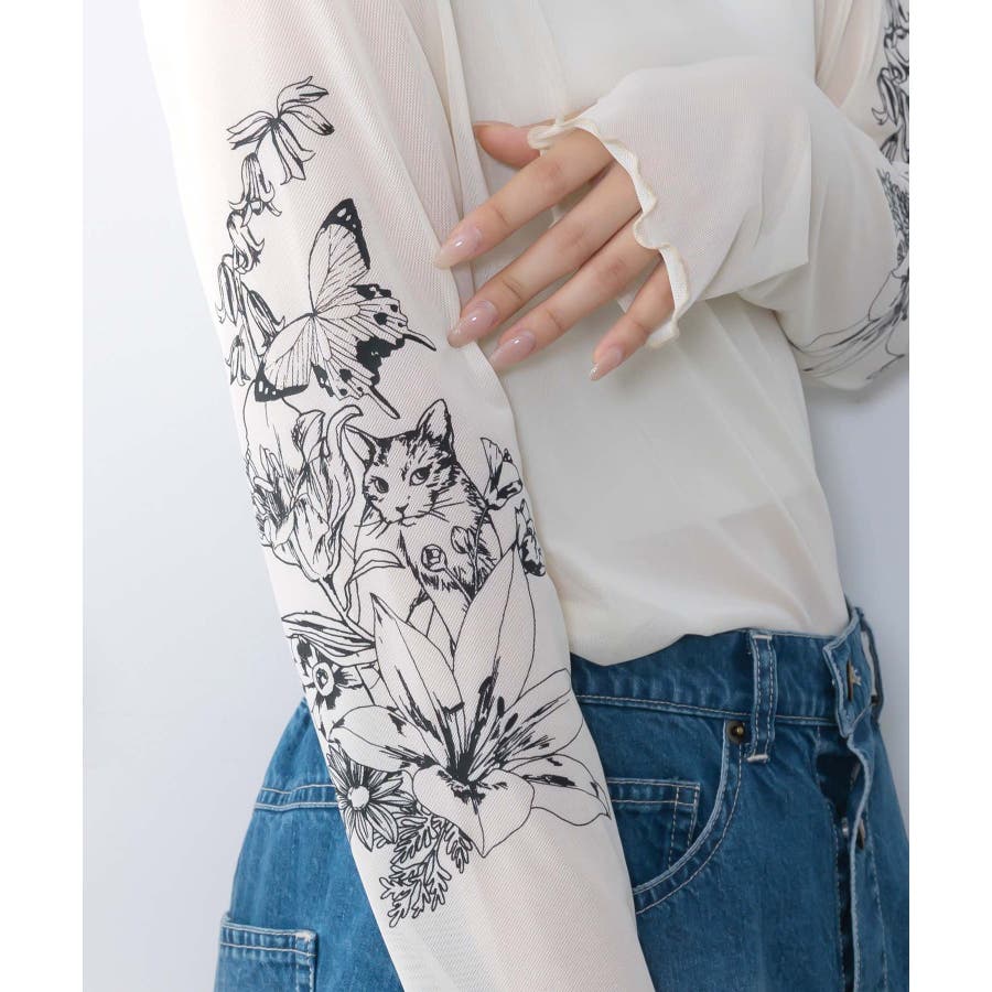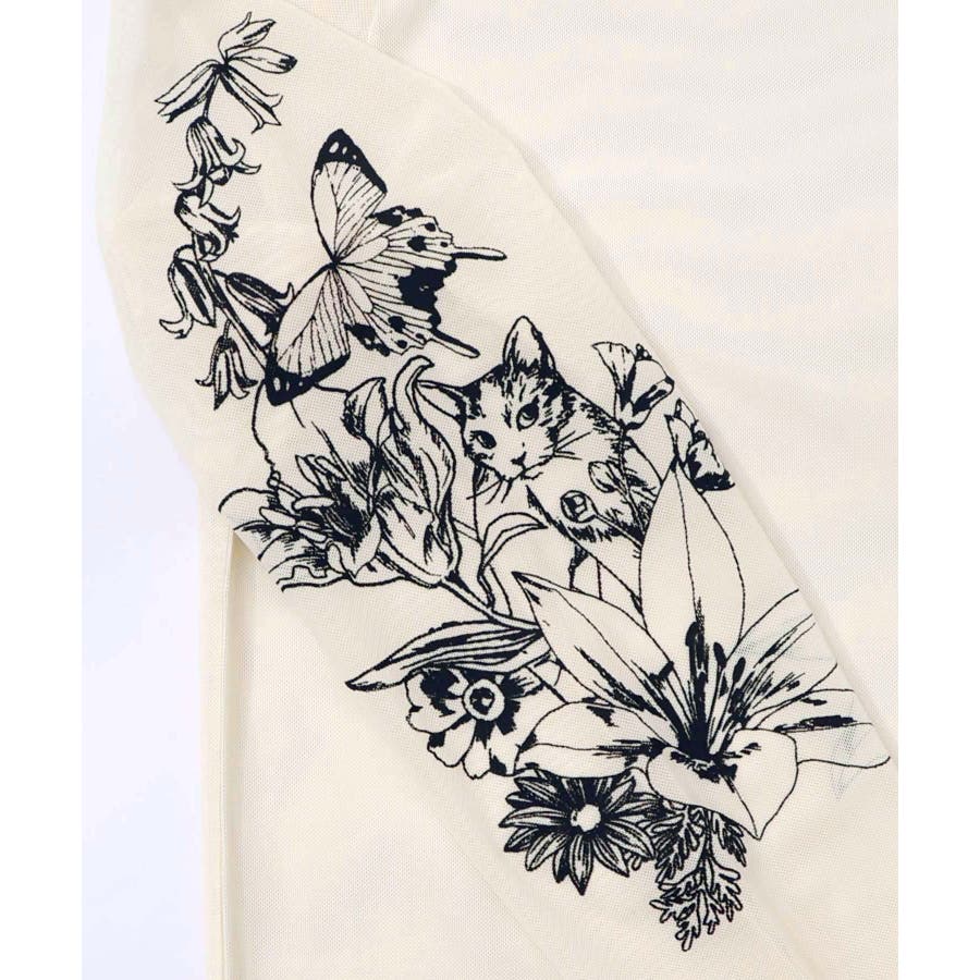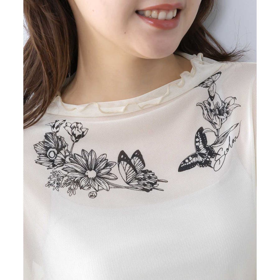 アンティーク風花蝶プリント ソフトチュールインナー