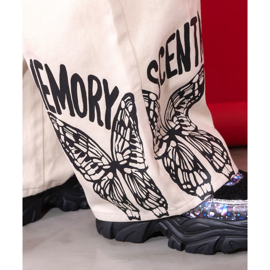 蝶々とロゴプリントがぱっと目を引く2素材展開のデザインパンツが登場!!