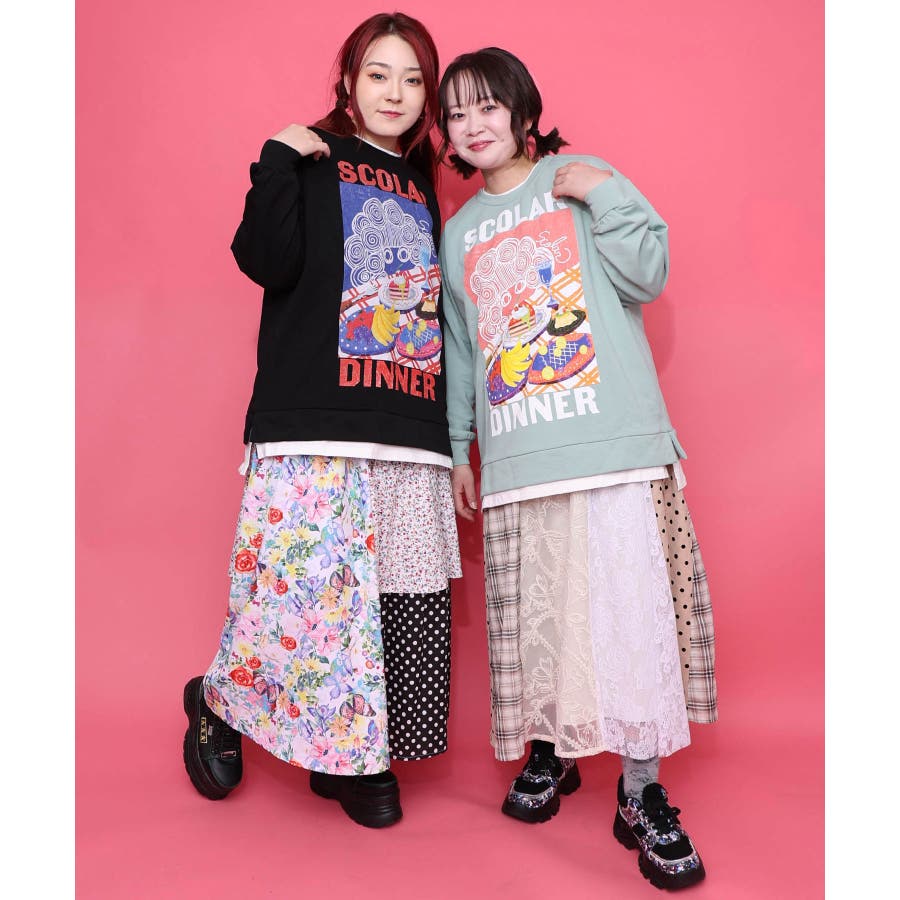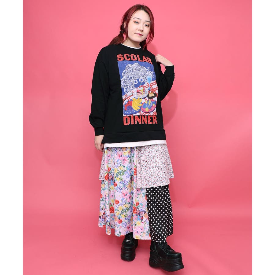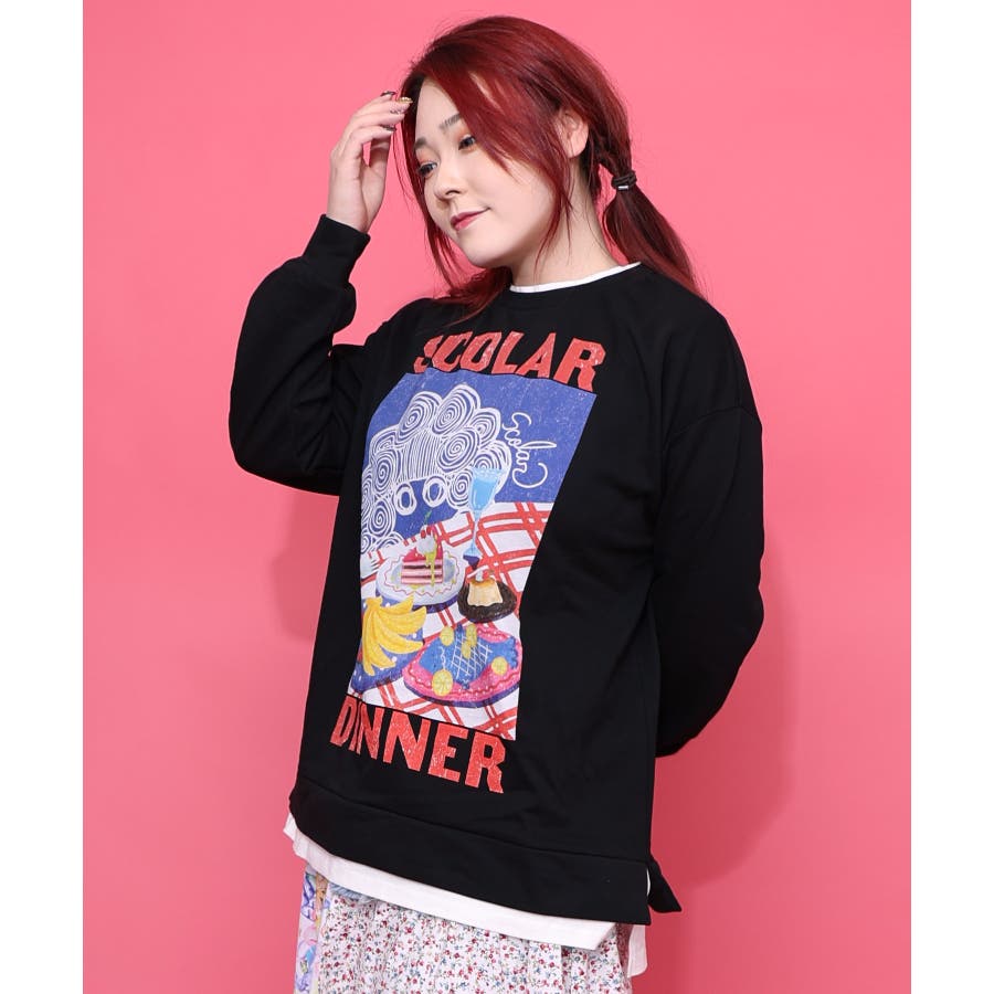 スカラーちゃんの夕食柄レイヤード風配色プルオーバー
