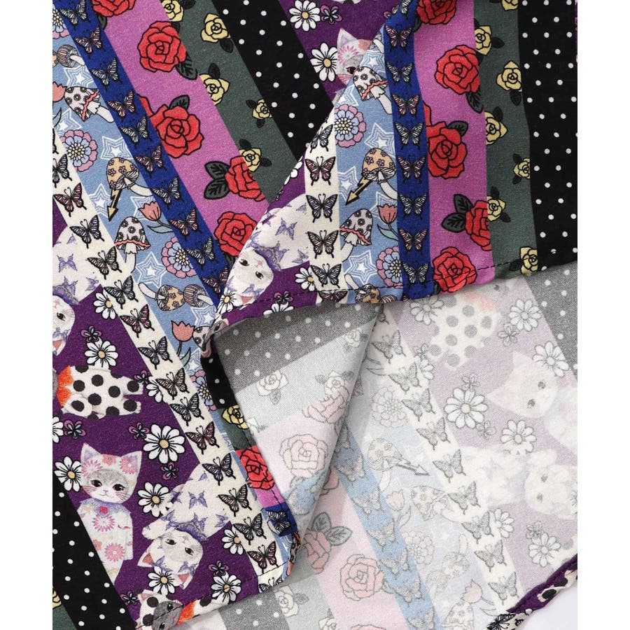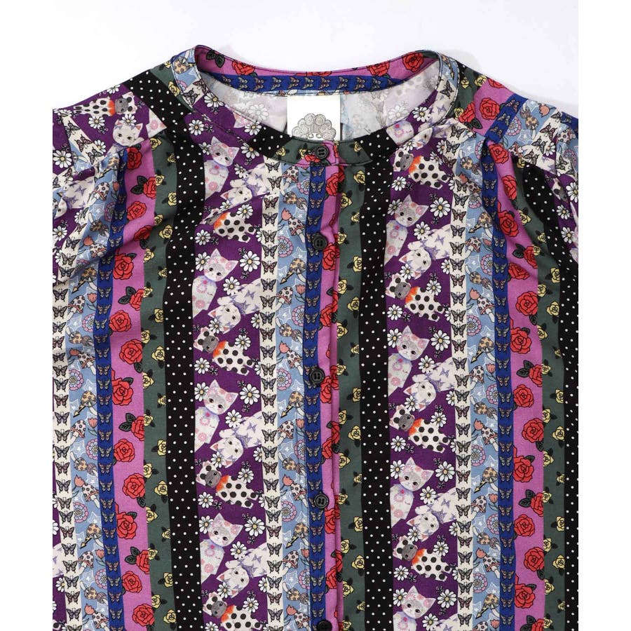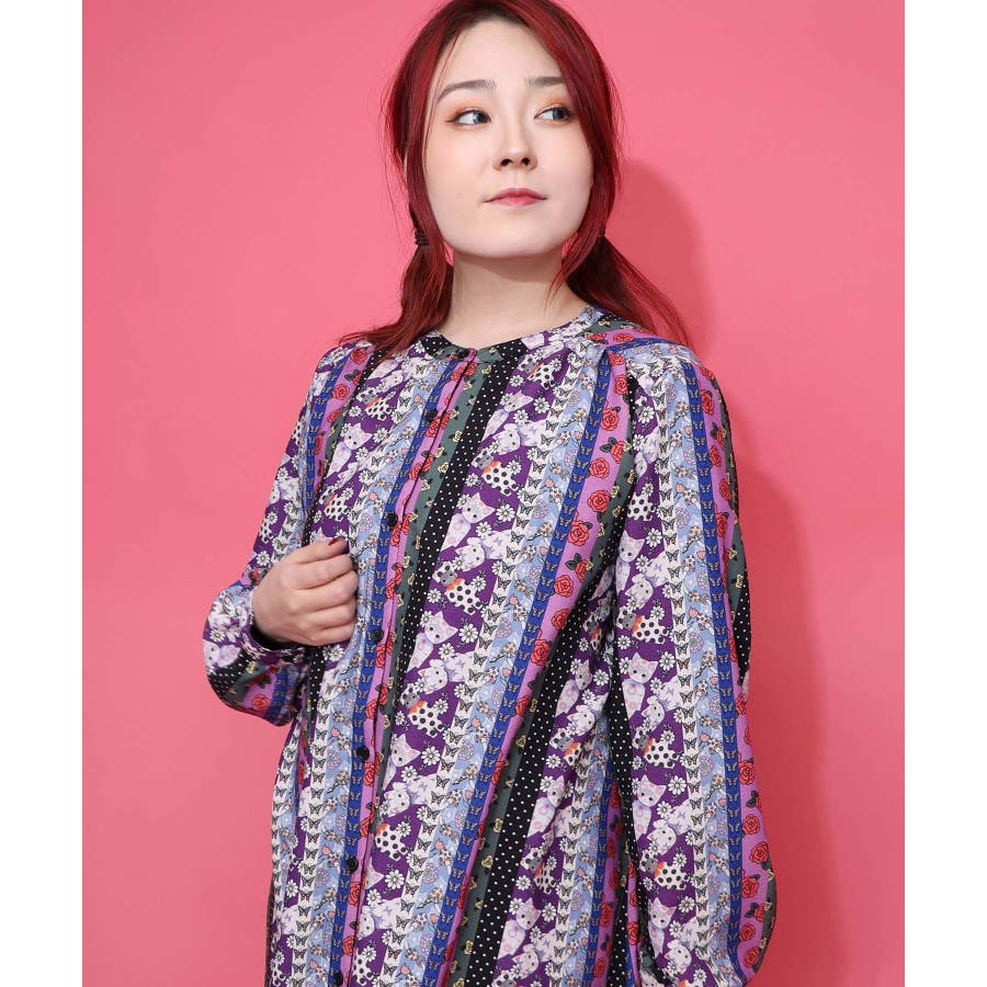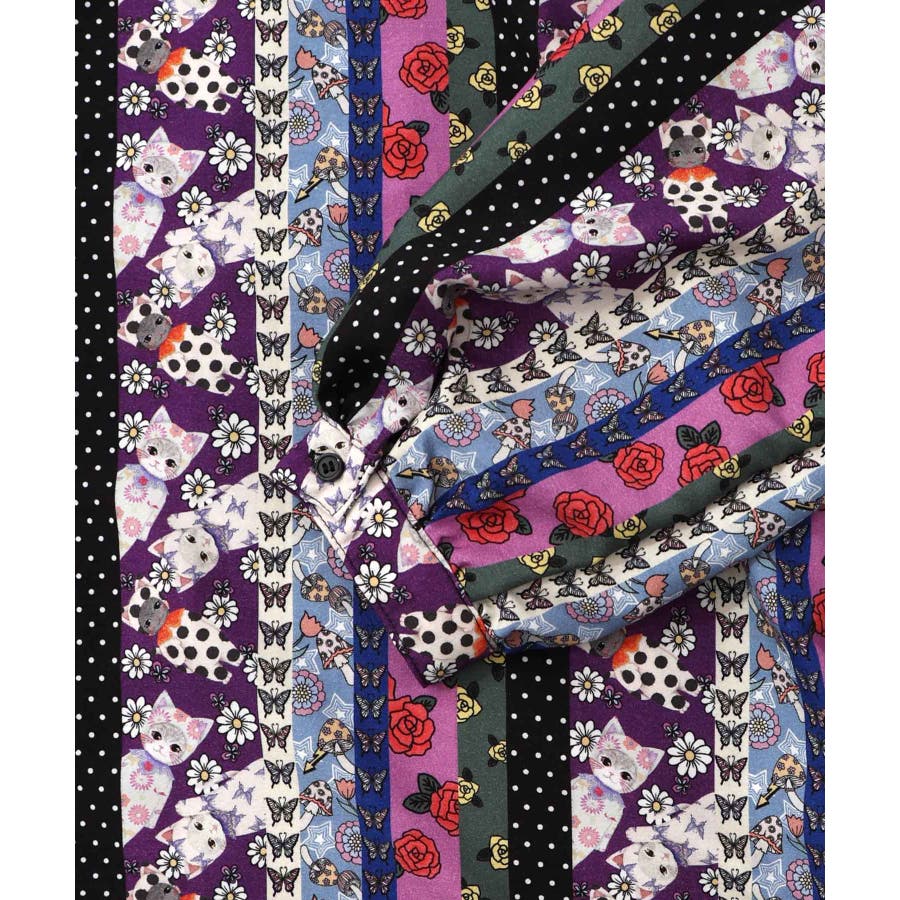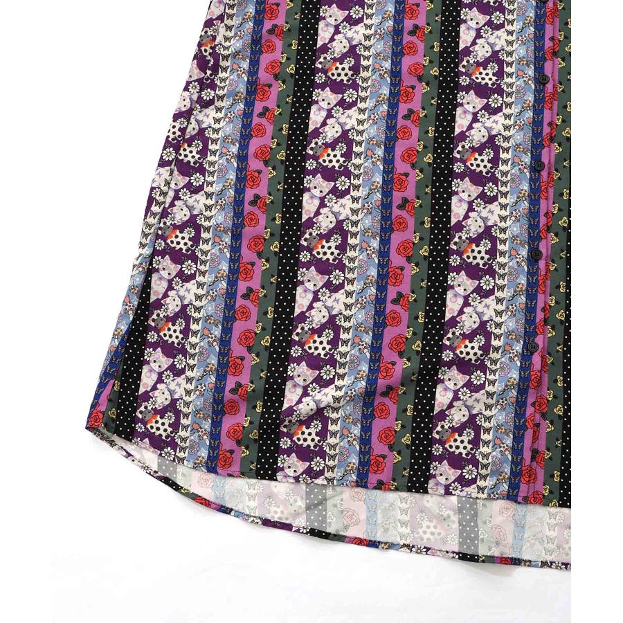 ストライプ総柄前開きシャツワンピース