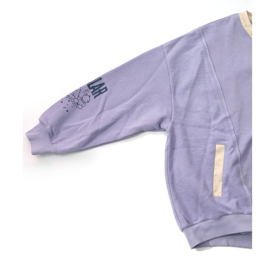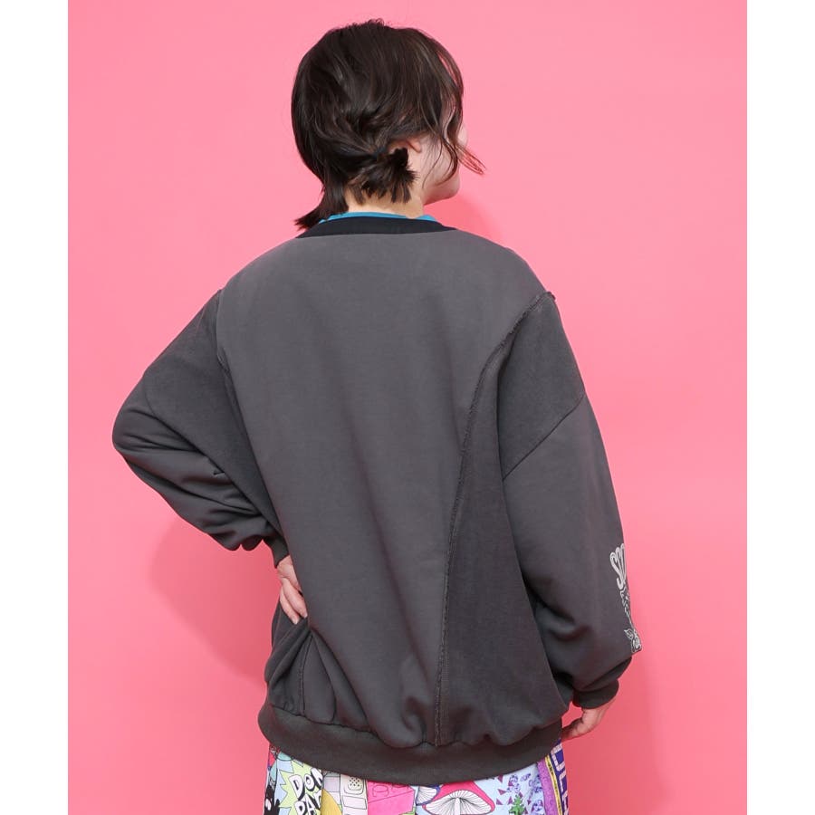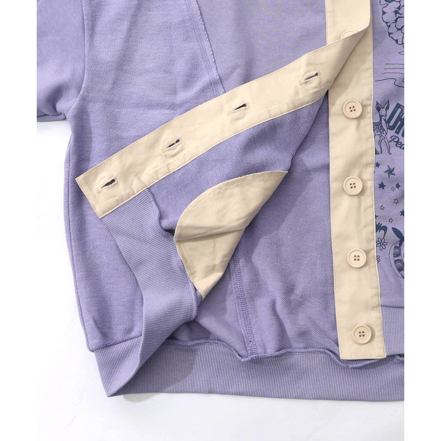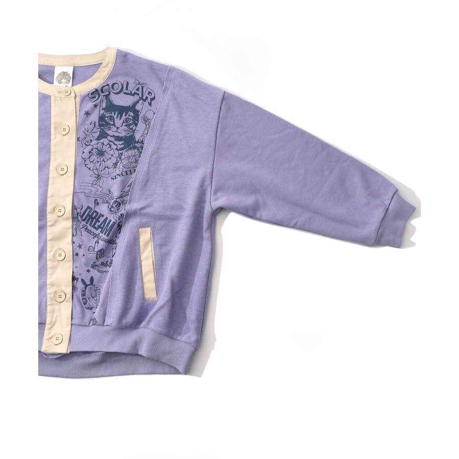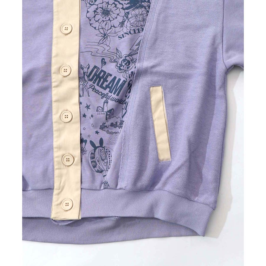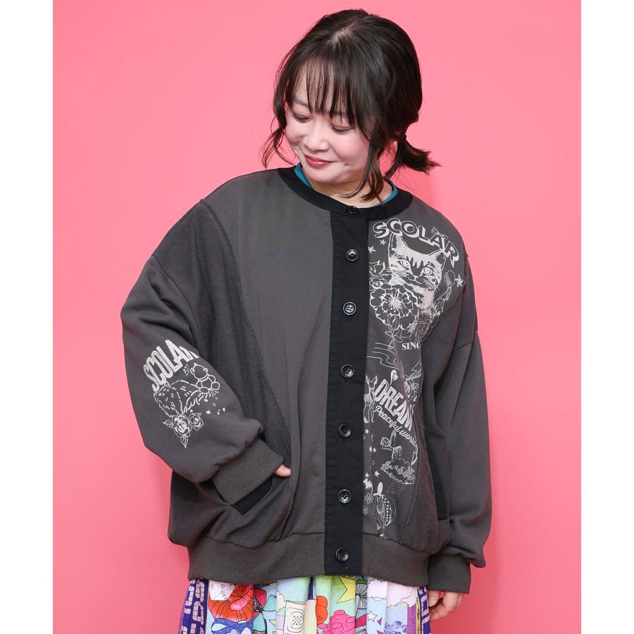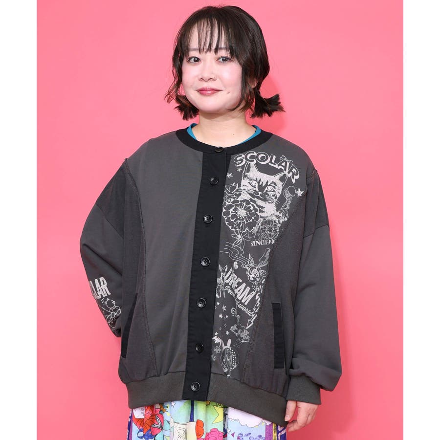チョーク風柄裏毛×綿ツイル異素材切替カーディガン