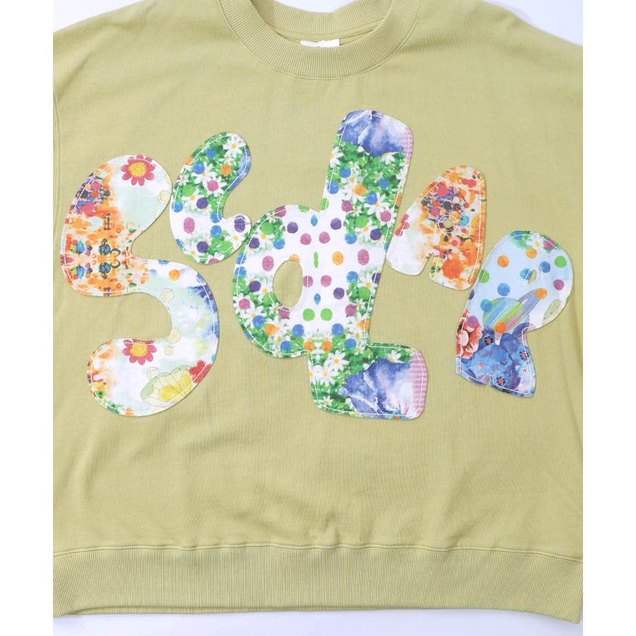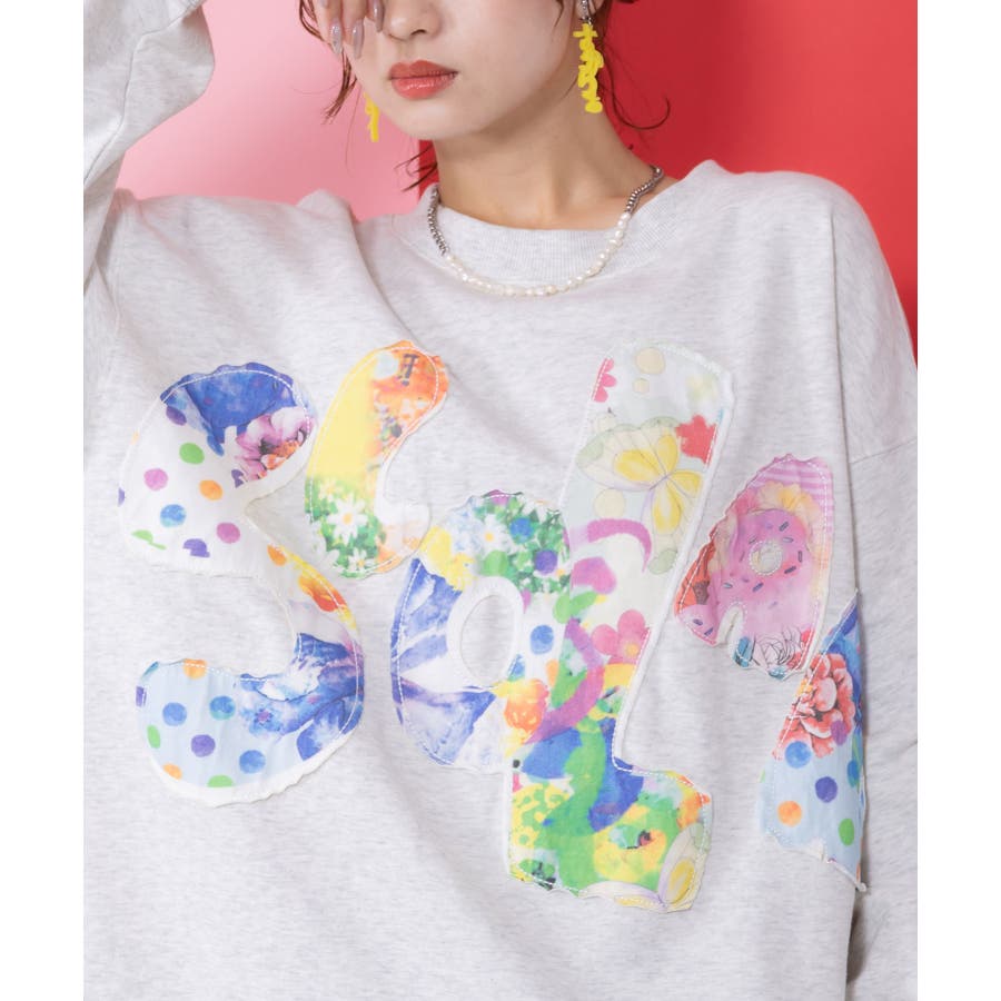 スカラー総柄ロゴアップリケ裏毛プルオーバー