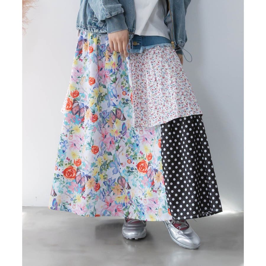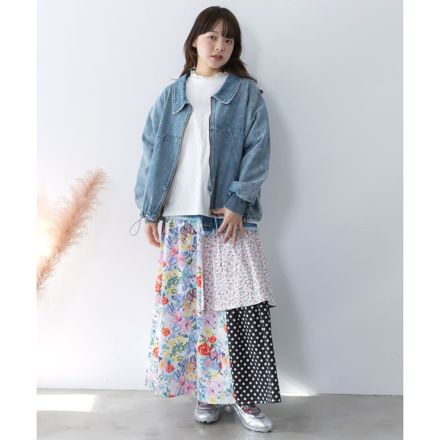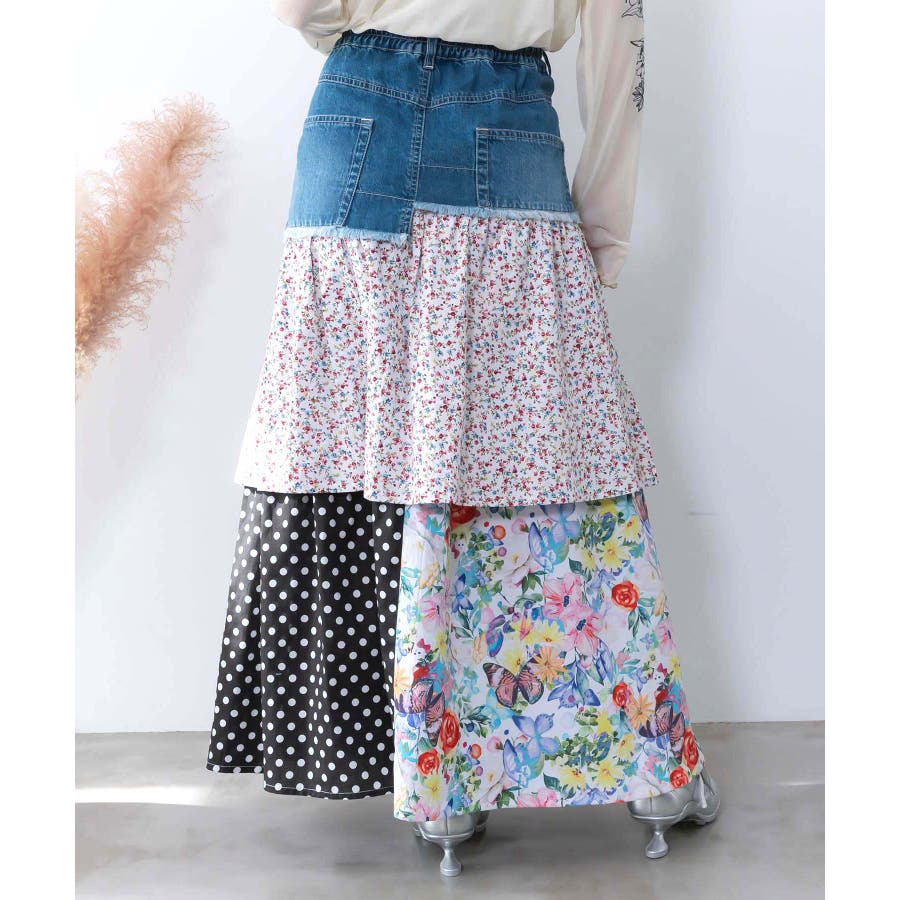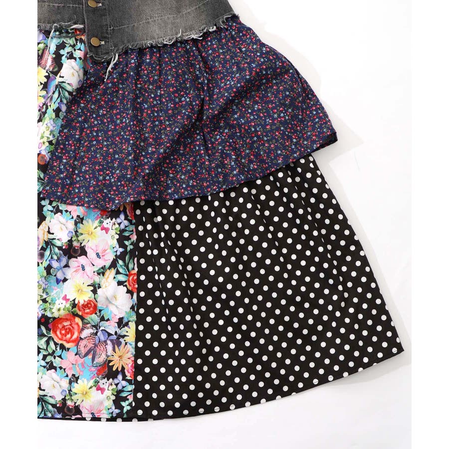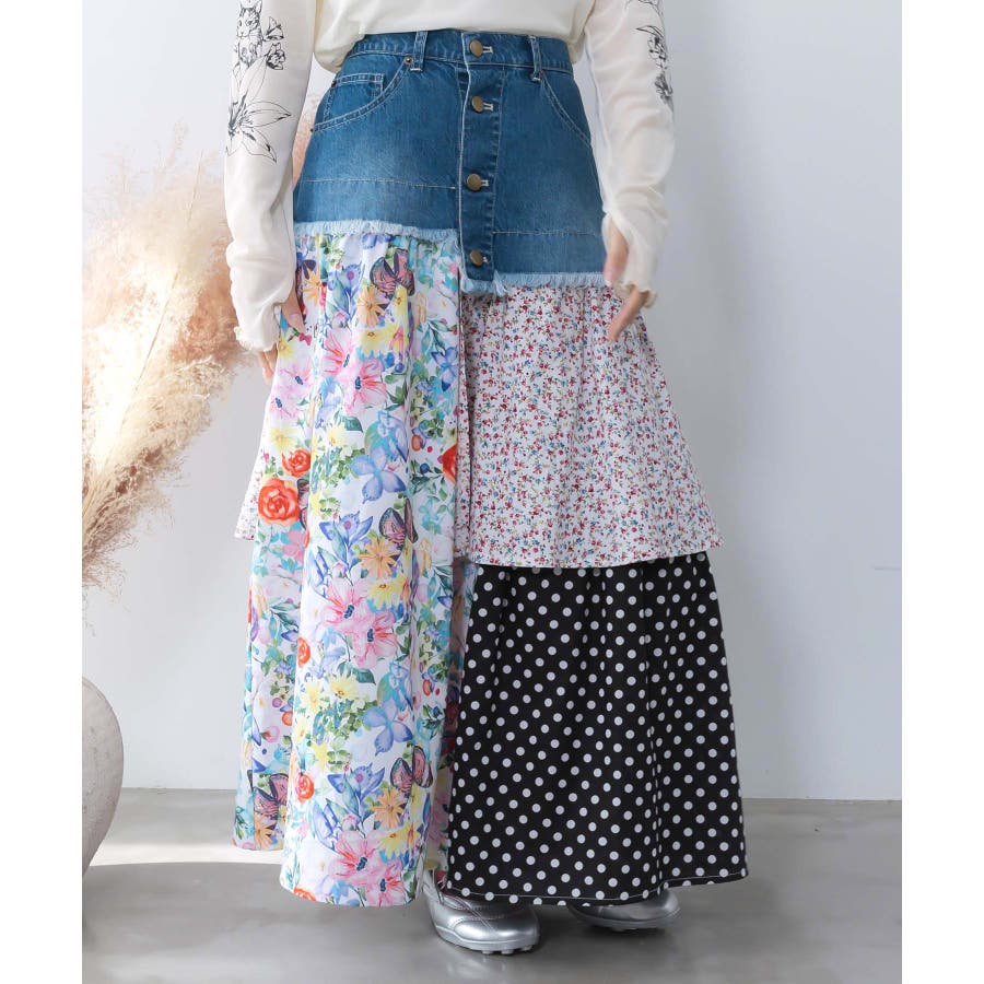 デニム×パッチワーク風 異素材切替2wayスカート