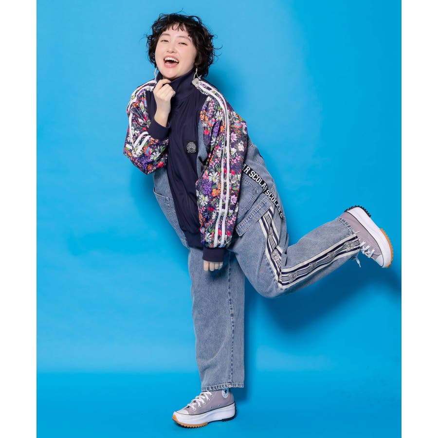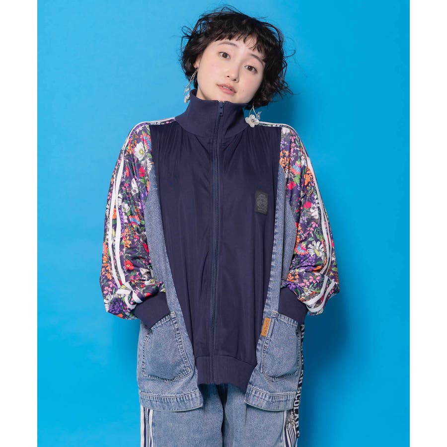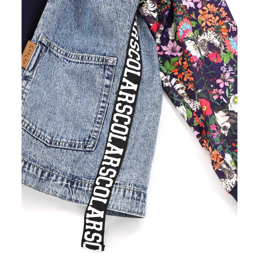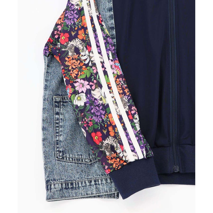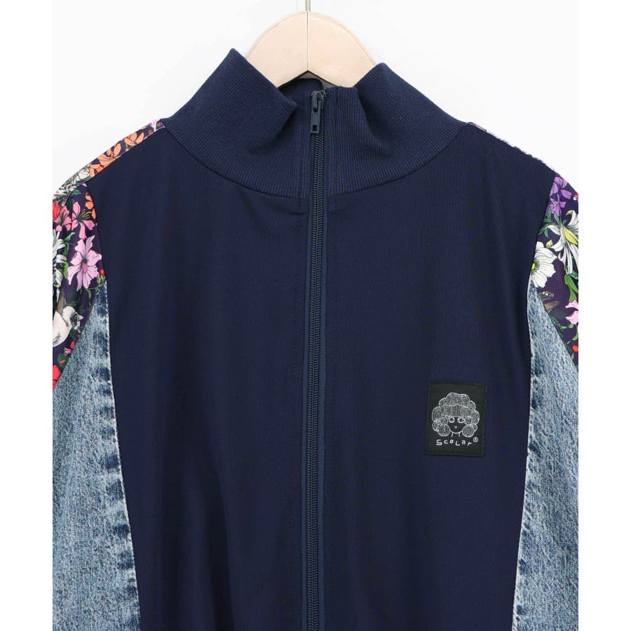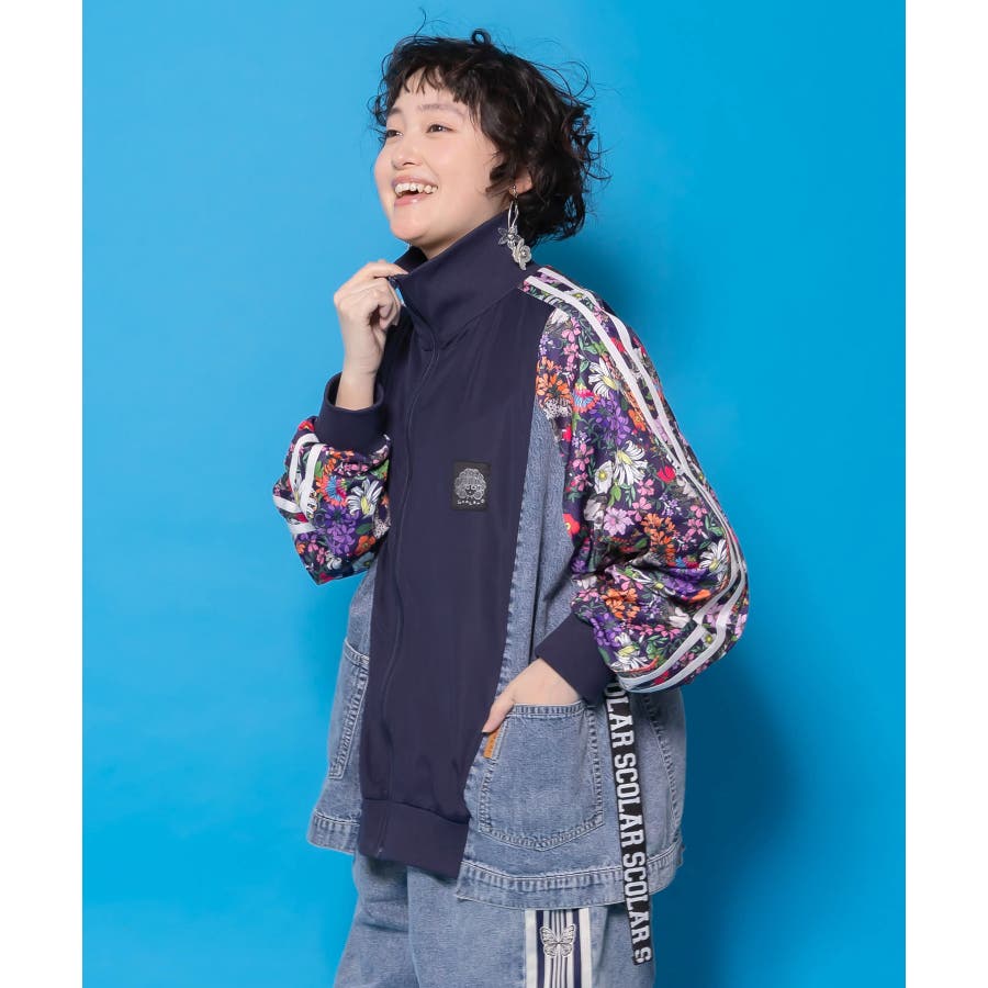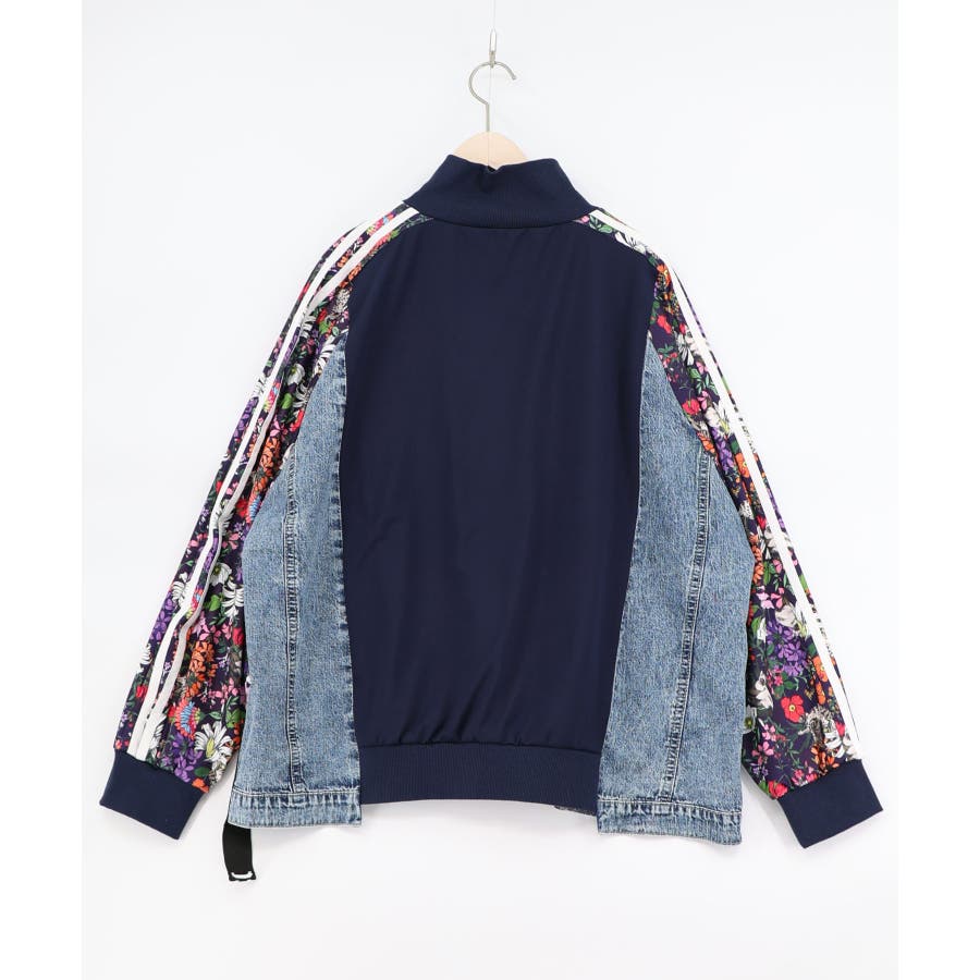 花ネコ柄ジャージ×デニム 異素材切替ブルゾン