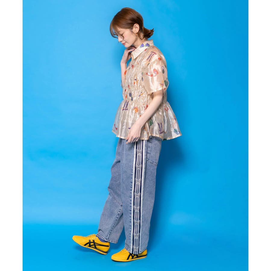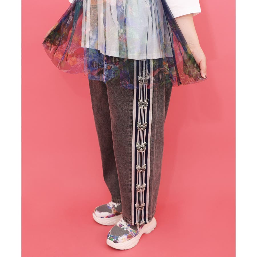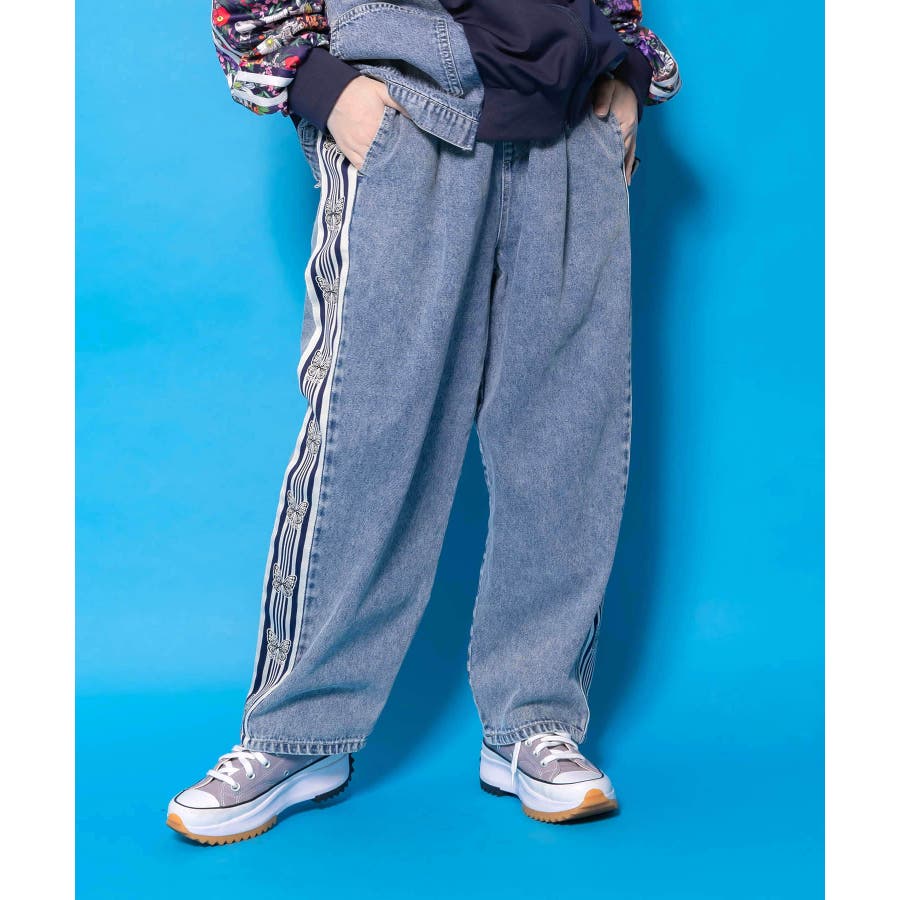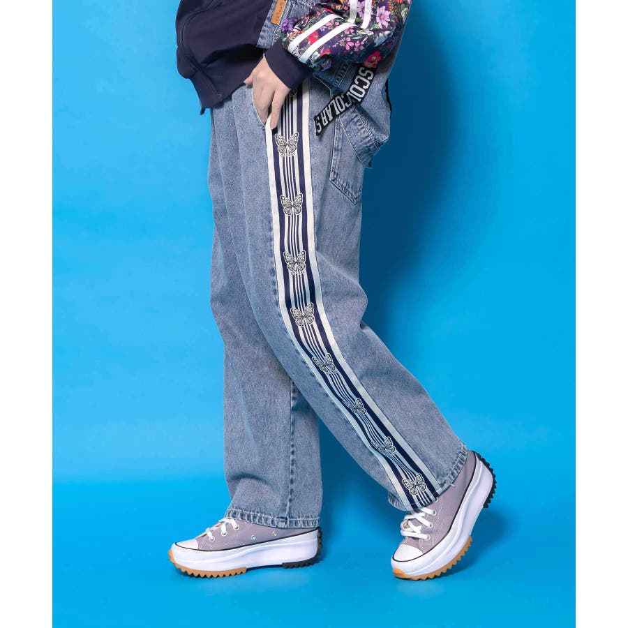 蝶ラインテープ付きデニムパンツ