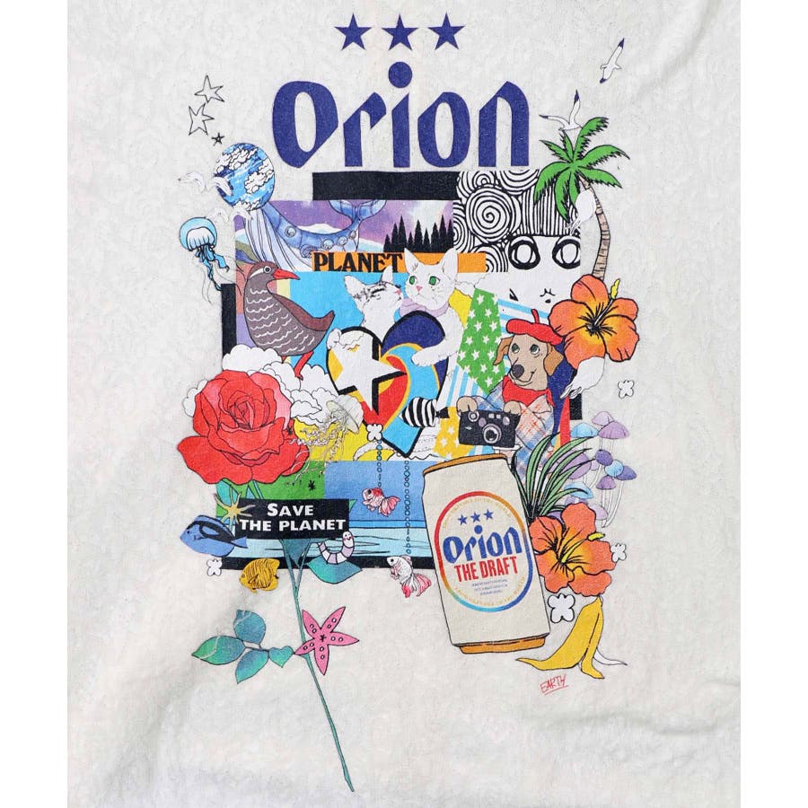 さらに背中には、オリオンビールをはじめとした南国モチーフを取り入れた
