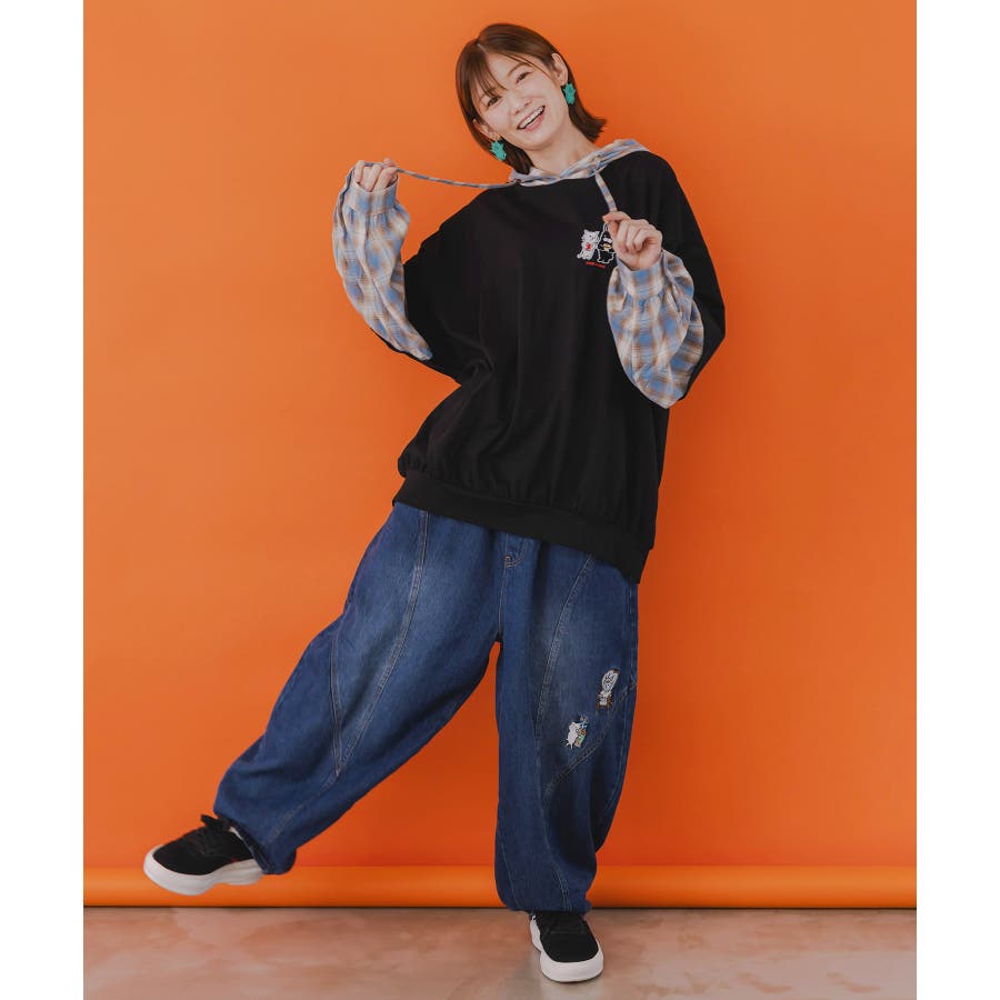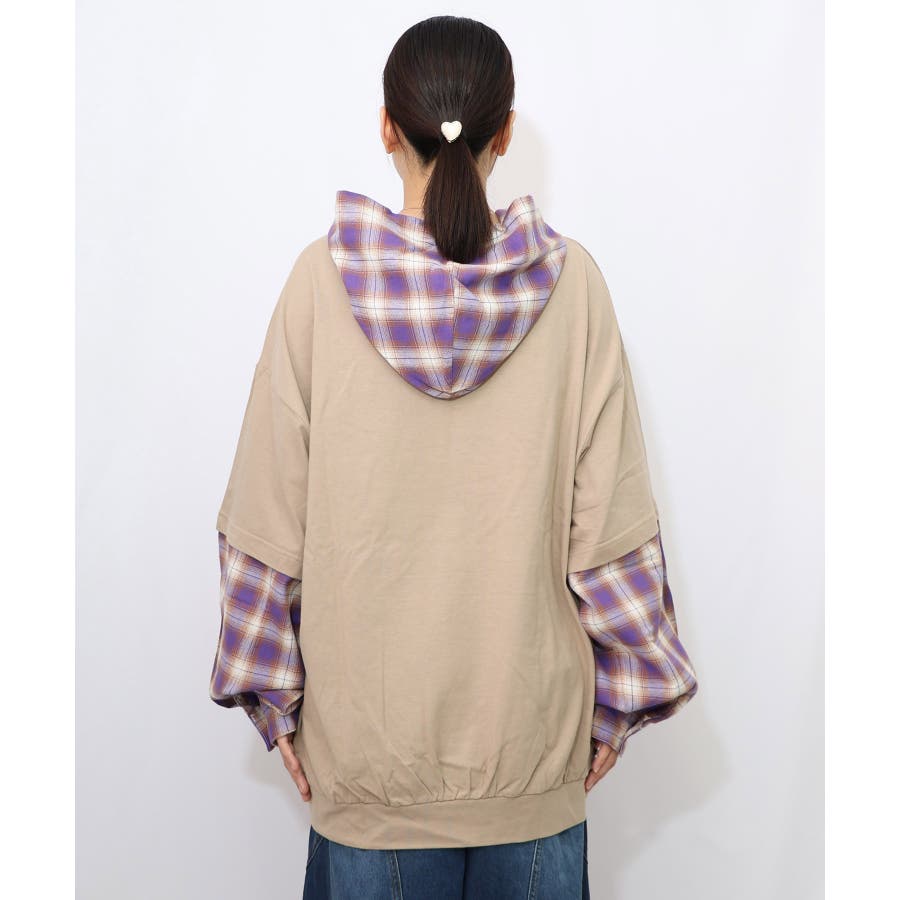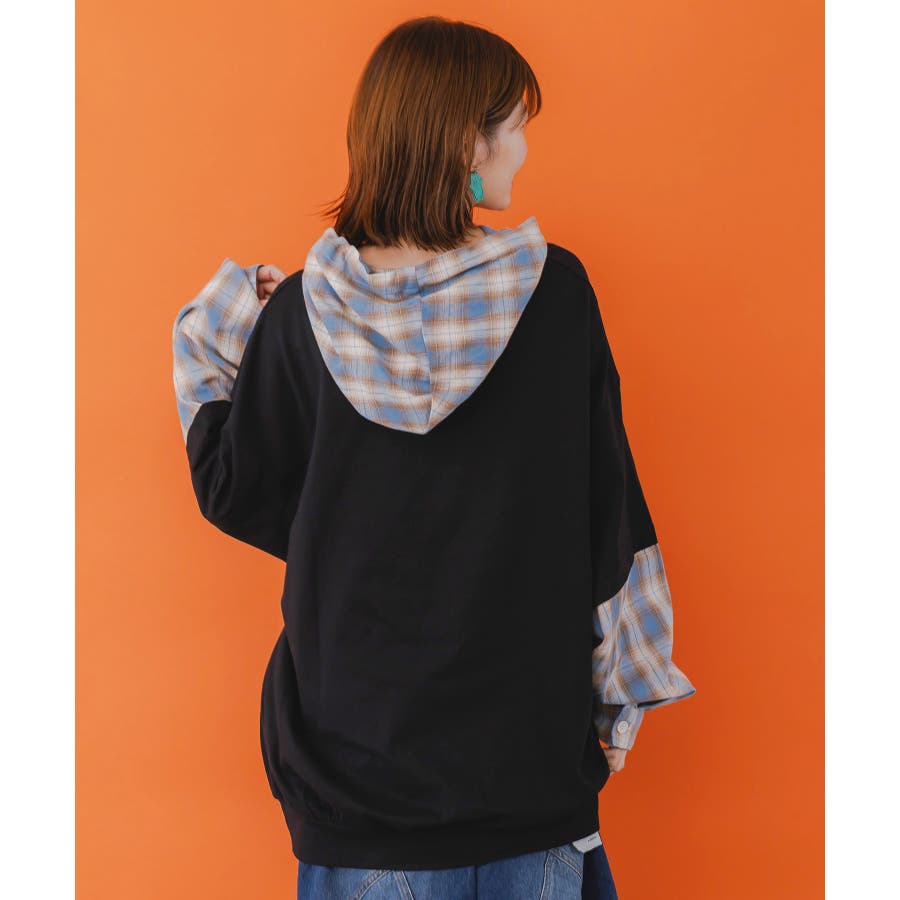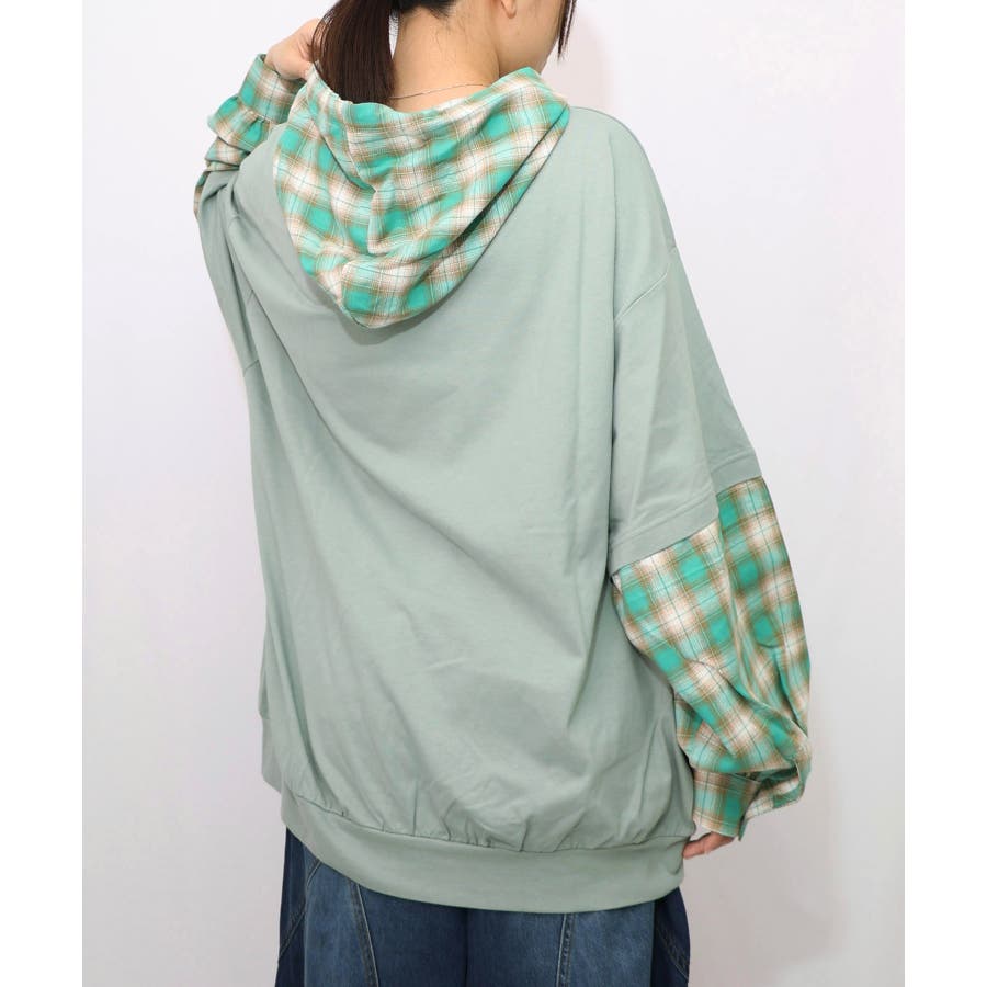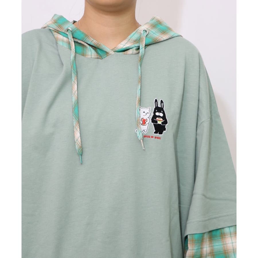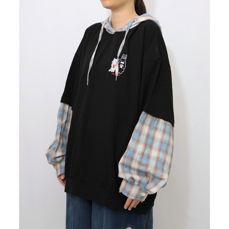 ネコとラビルのチェック柄切替フーデッドプルオーバー