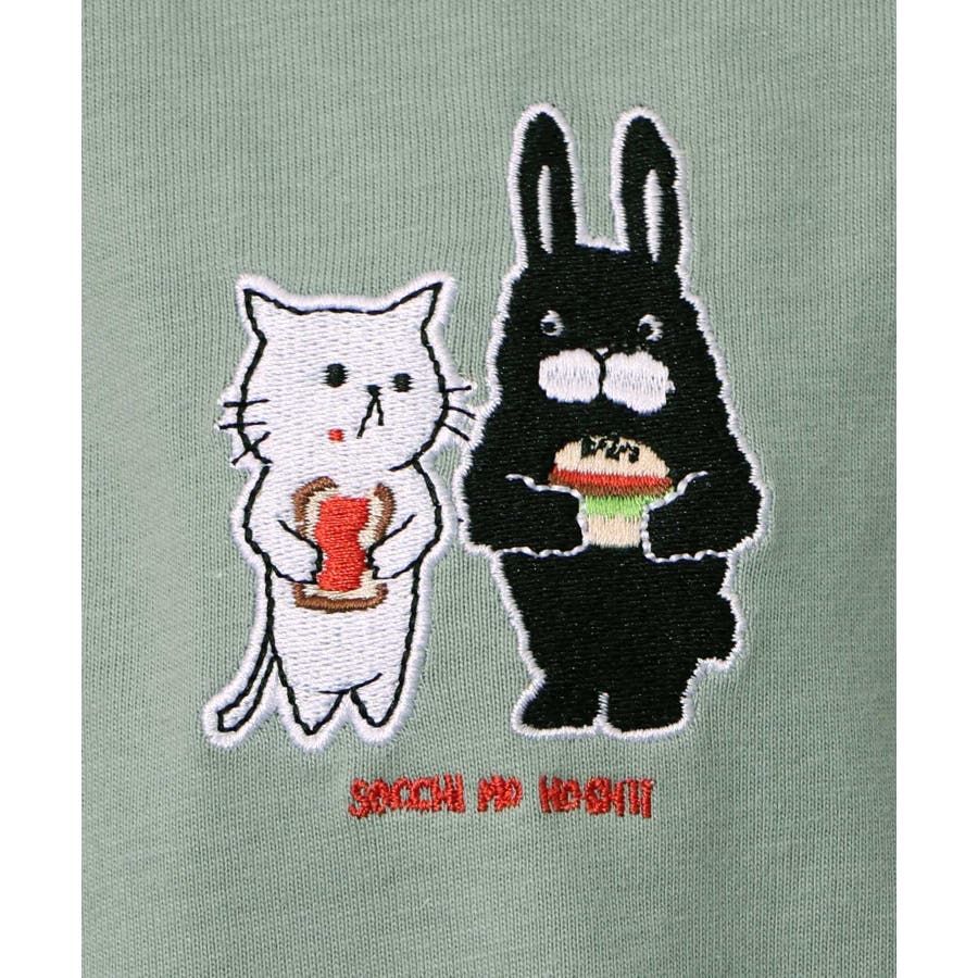 胸元にはいちごジャムパンを手にもったパリティのネコと、ハンバーガーを持ったラビルの