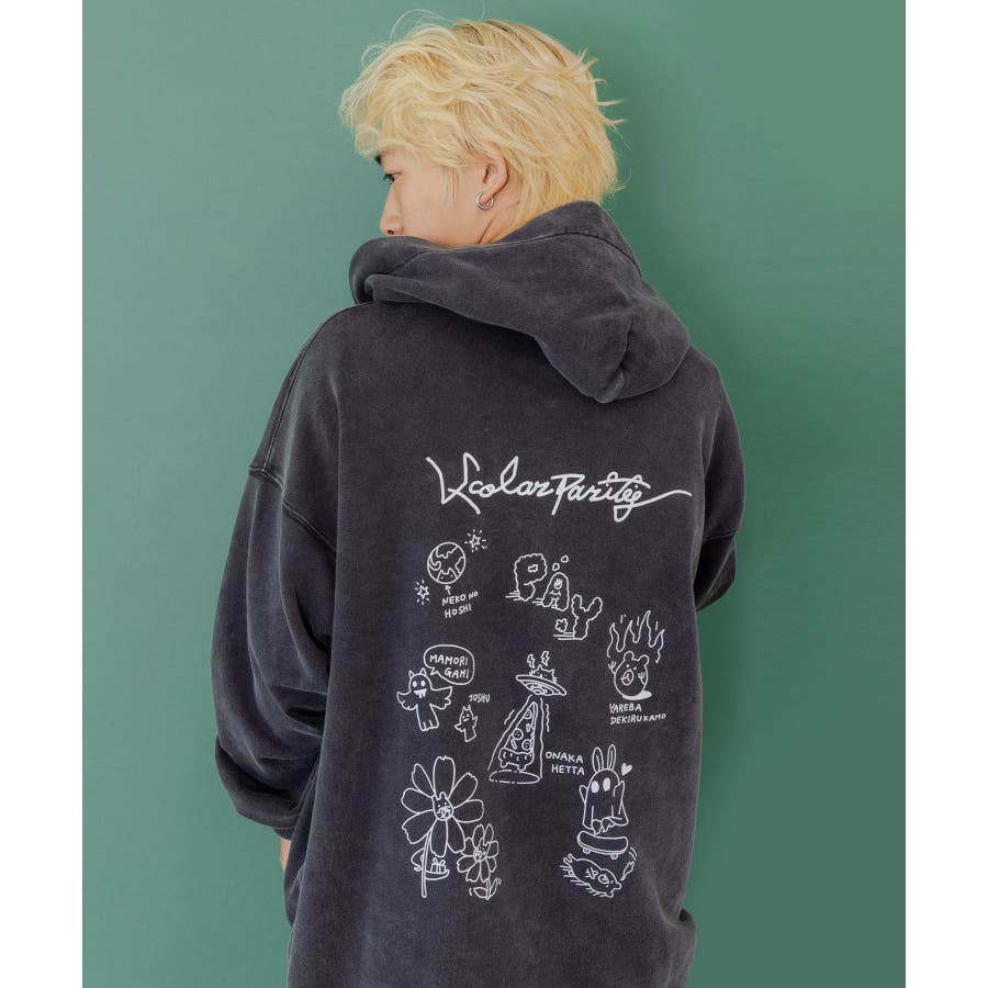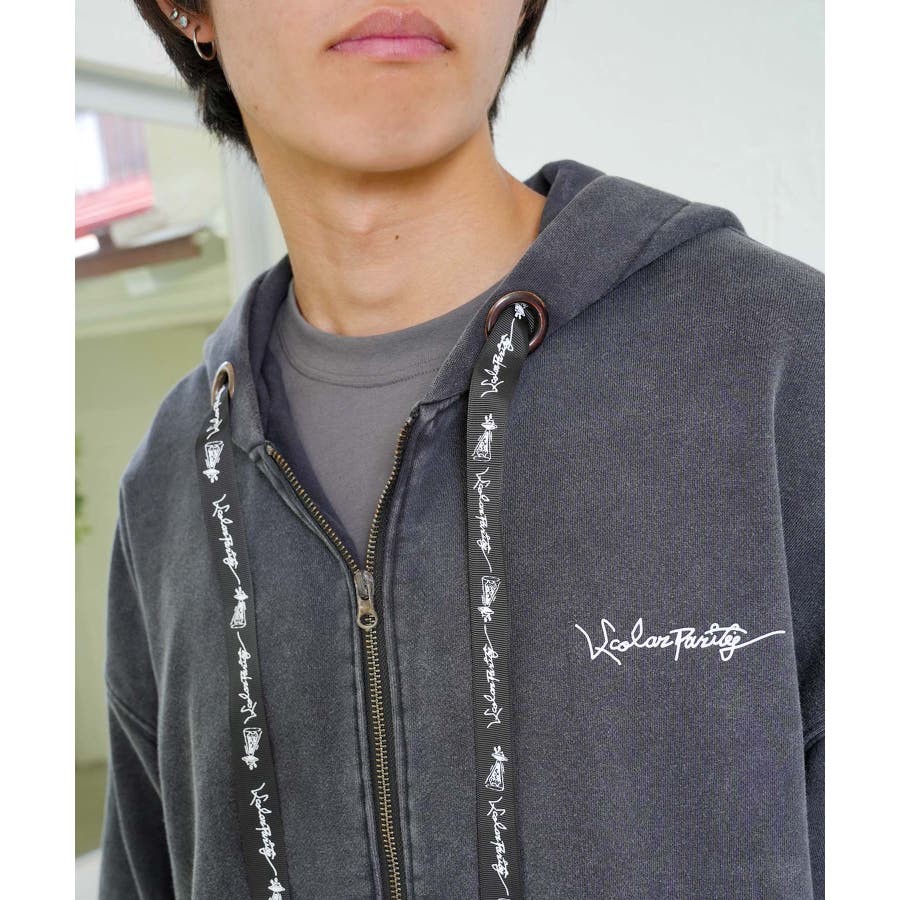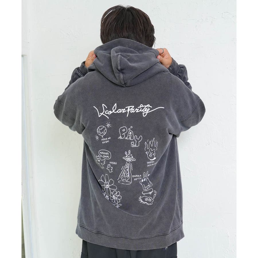 プリントだけでなく、フードの紐にもパリティのロゴがあしらわれており