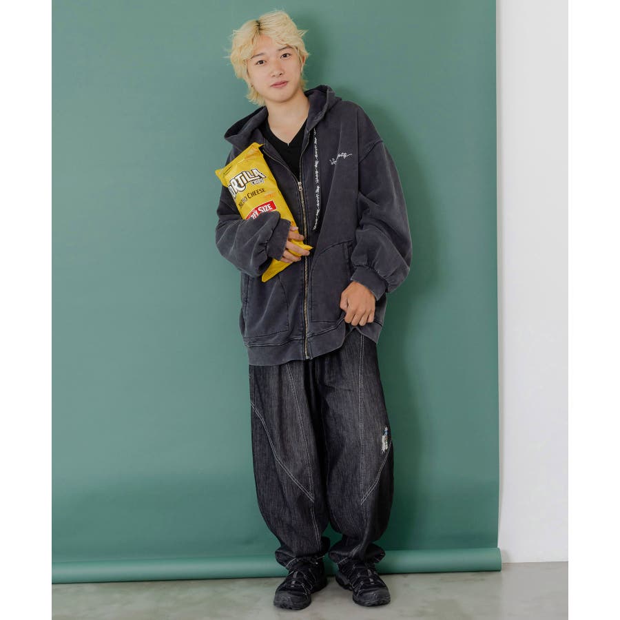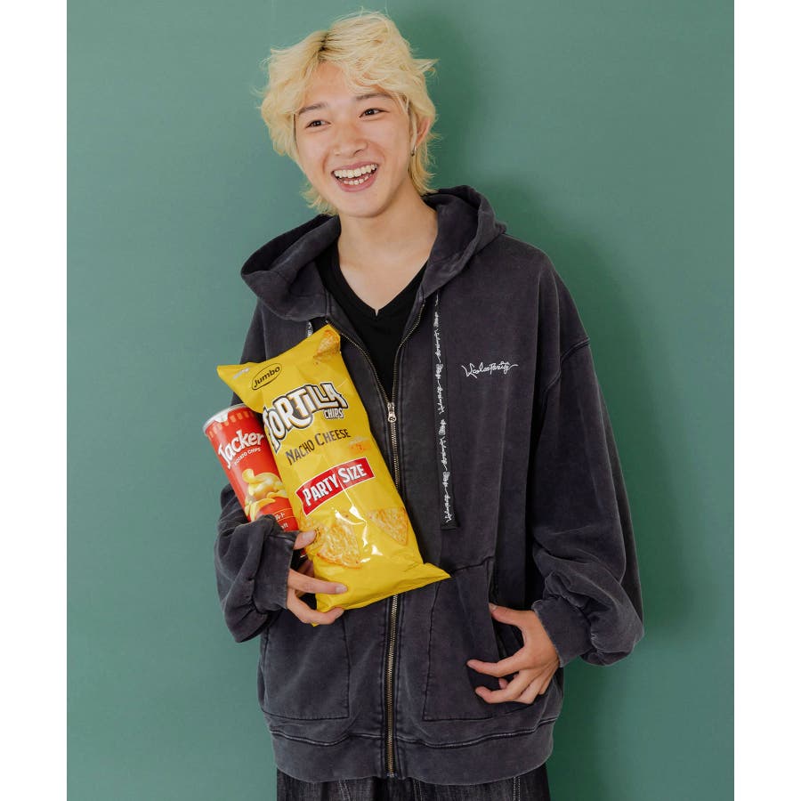 スノーウォッシュ加工を施したヴィンテージ感のあるジップパーカー。