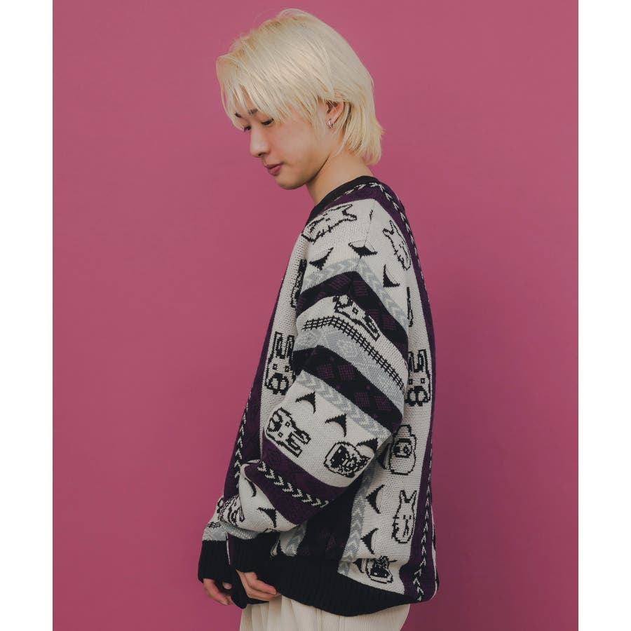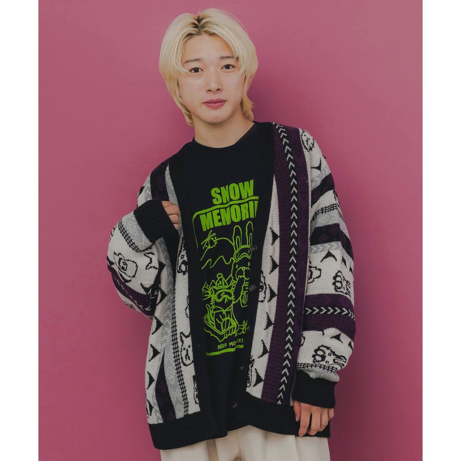 落書き調Parityキャラジャガード3Dニットカーディガン