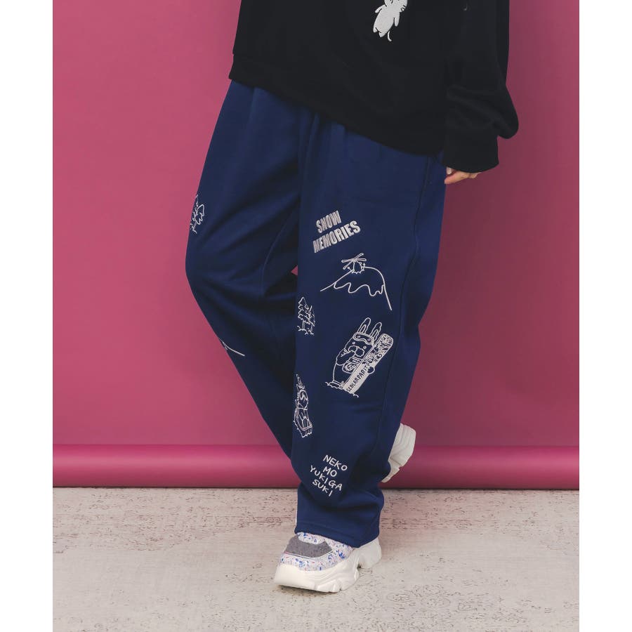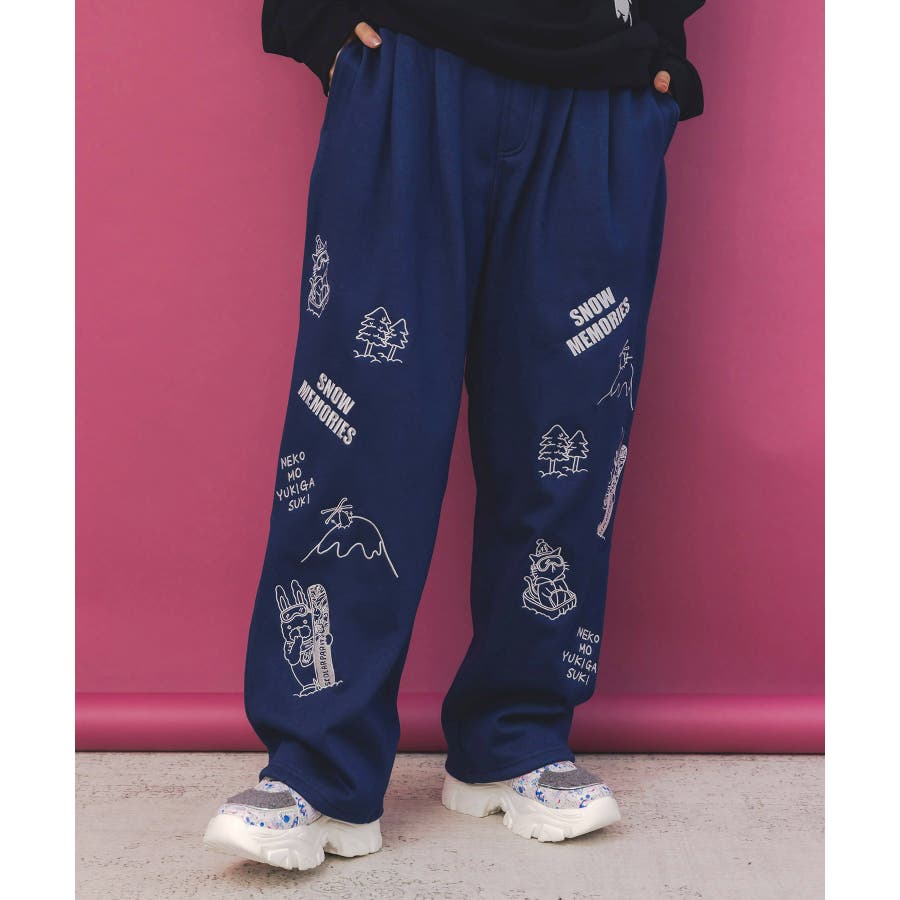 ラビルとネコのスノーメモリー裏起毛パンツ