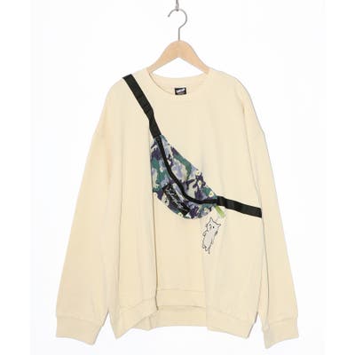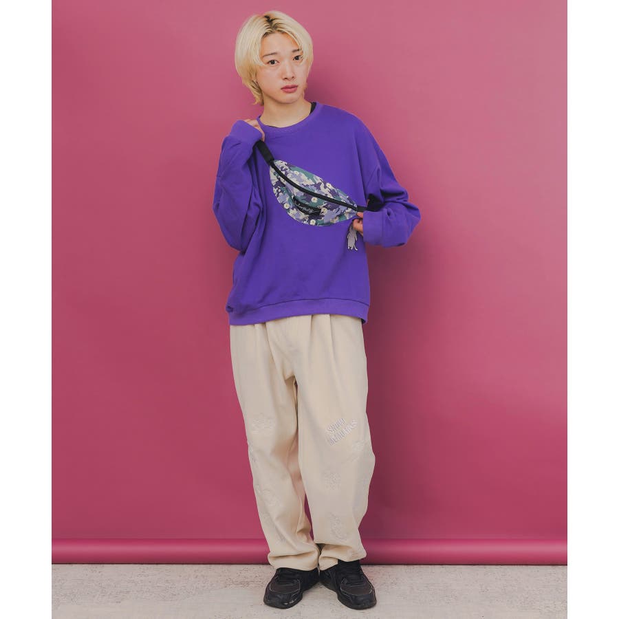 フェイクボディバッグ×ネコ刺繍付き裏毛プルオーバー