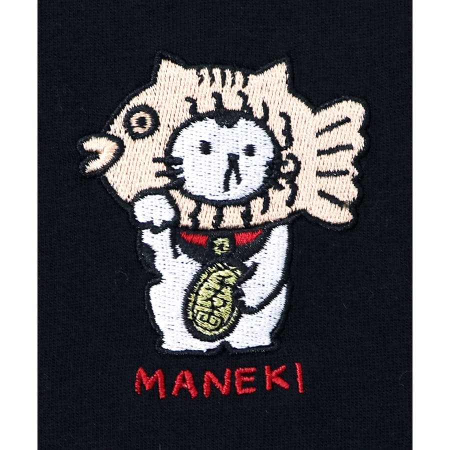 よく見るとネコは“まねきネコ”になっており、手に抱えたピカピカ小判刺繍が