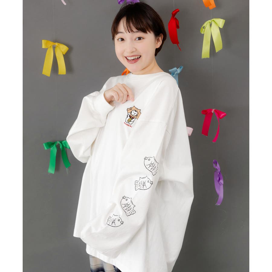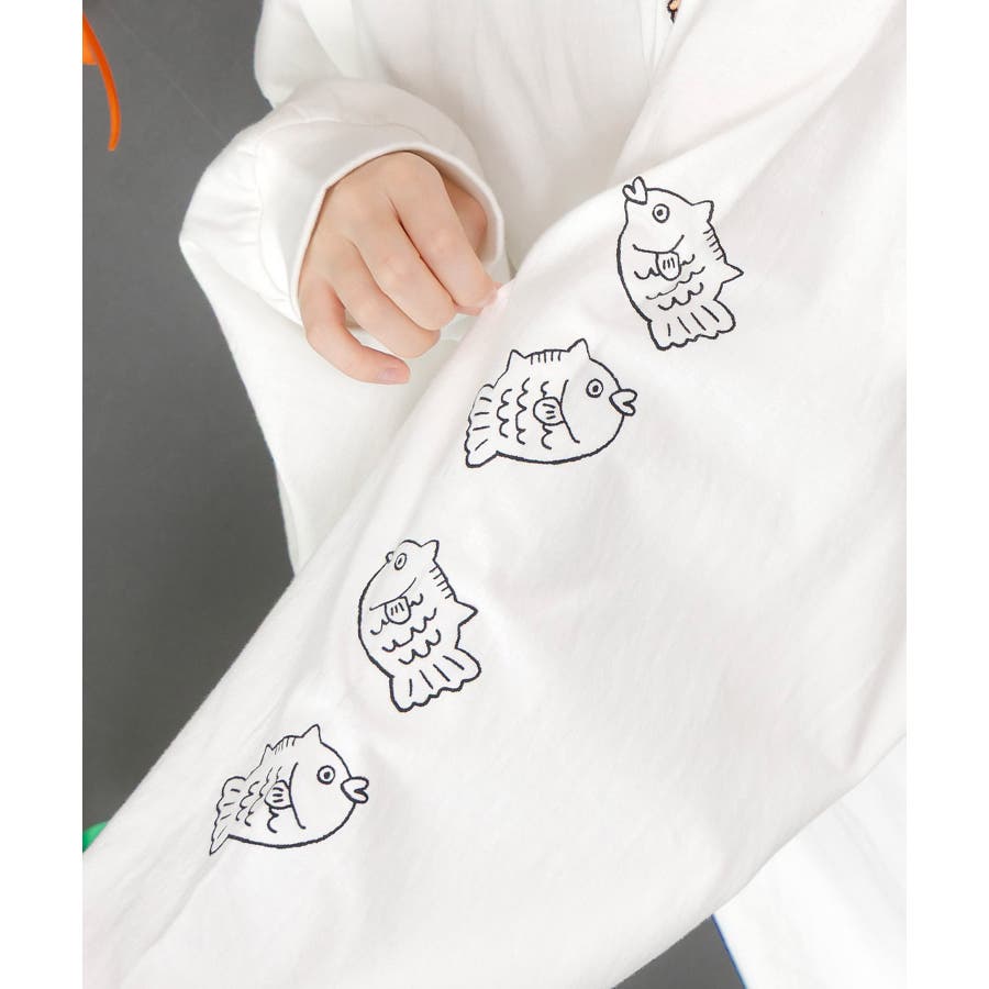 袖にはたい焼きモチーフが縦にずらりと並び、思わず笑顔になる愛らしさが魅力。