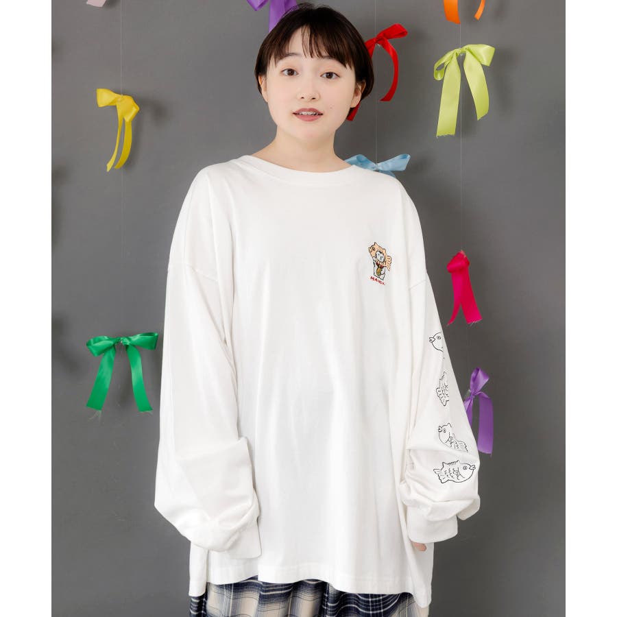 タイ焼き招きネコ刺繍ロンT