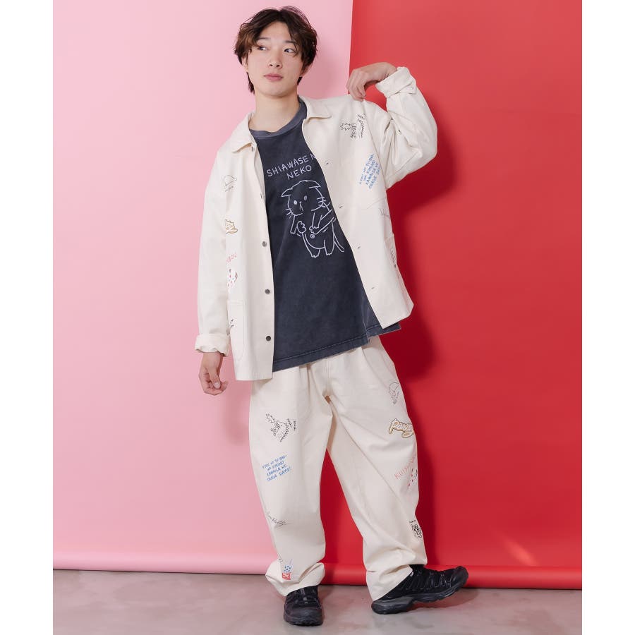 同柄パンツと合わせたカジュアルポップなセットアップ風コーデは、