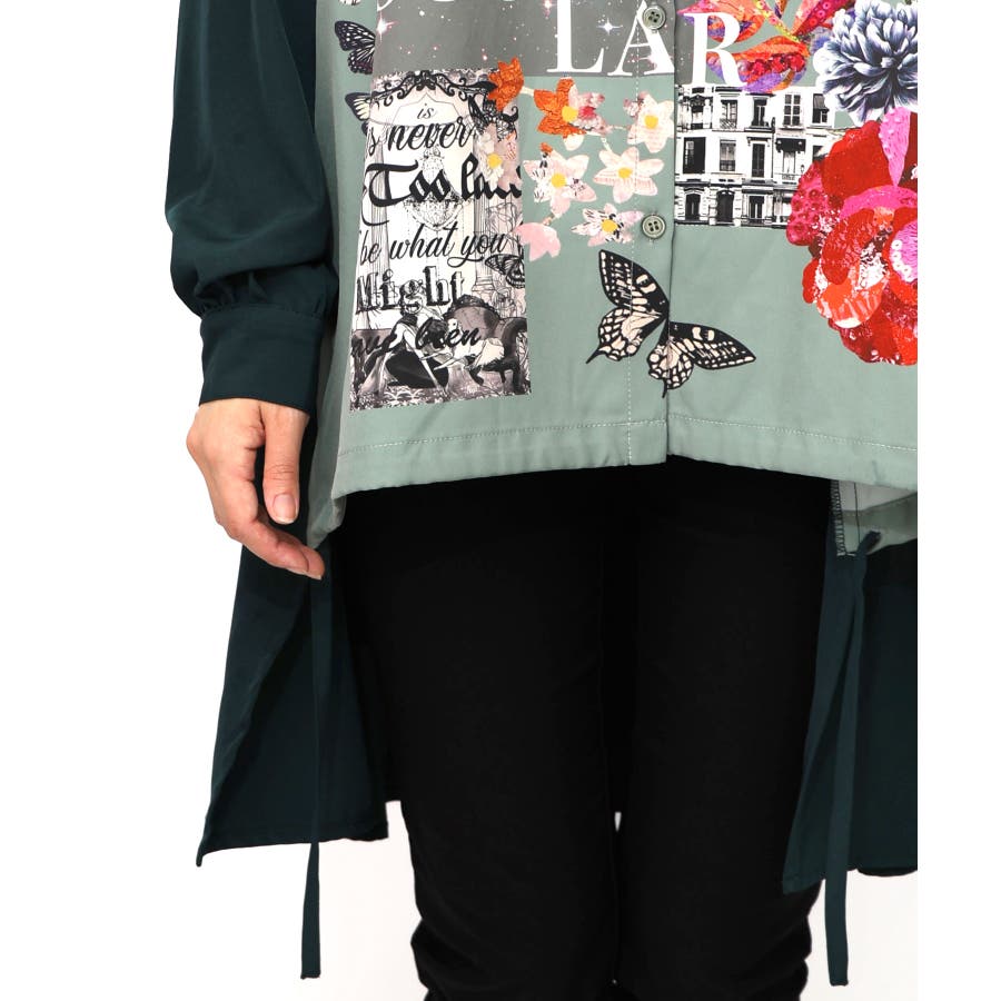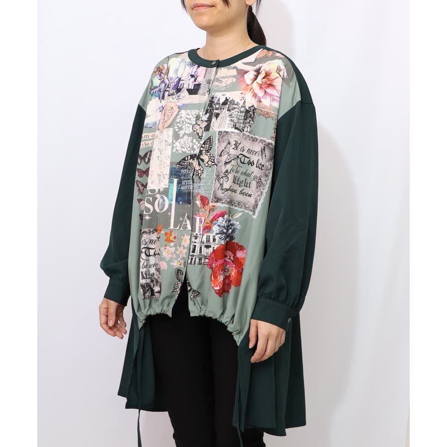 前から見れば一見ブラウス、後ろから見れば裾の長めなチュニックと