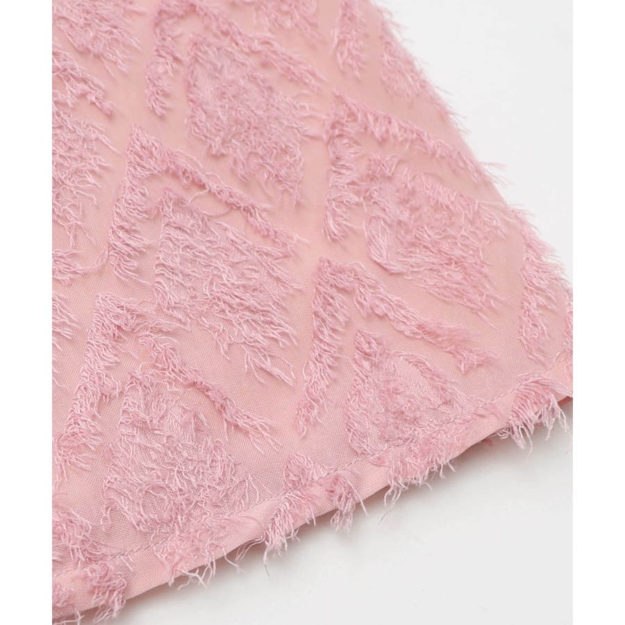裾には透け感のあるフェザージャカードシフォンを切り替え、
