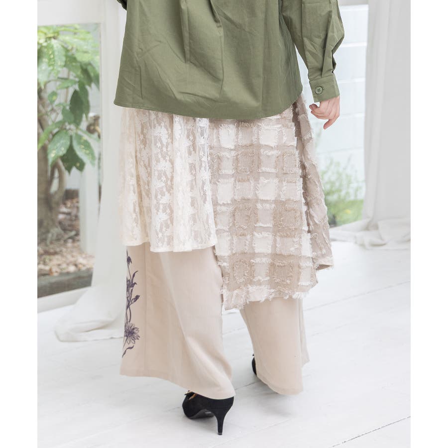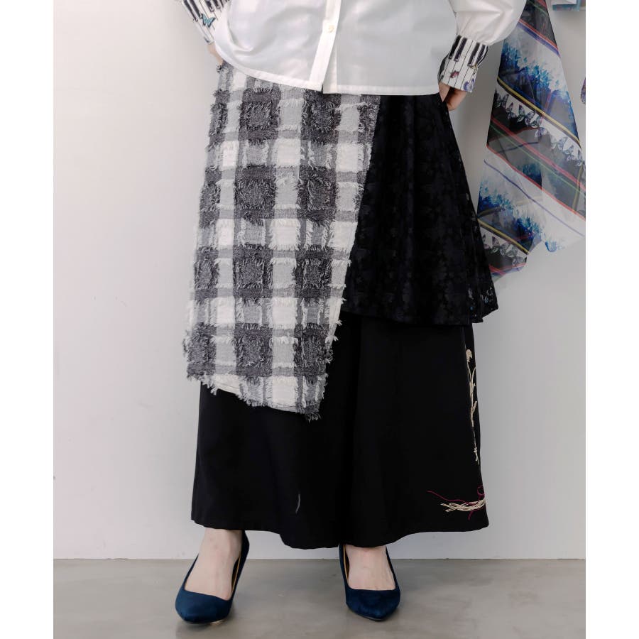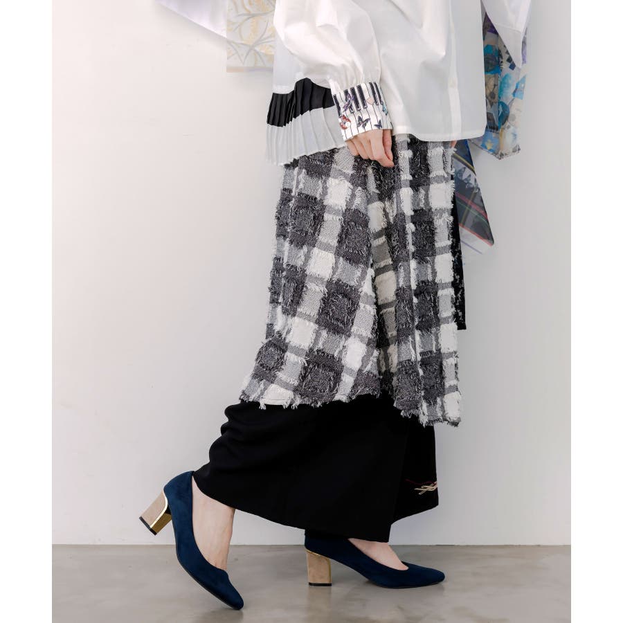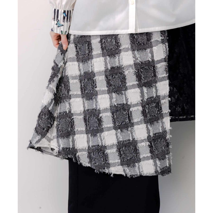歩くたびに揺れるチェック柄とレースのスカート部分が女性らしいロマンティックな雰囲気を演出します。
