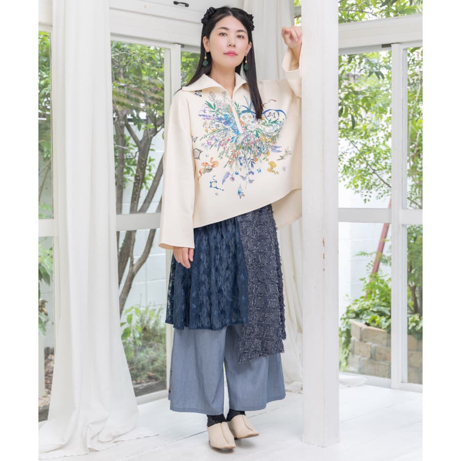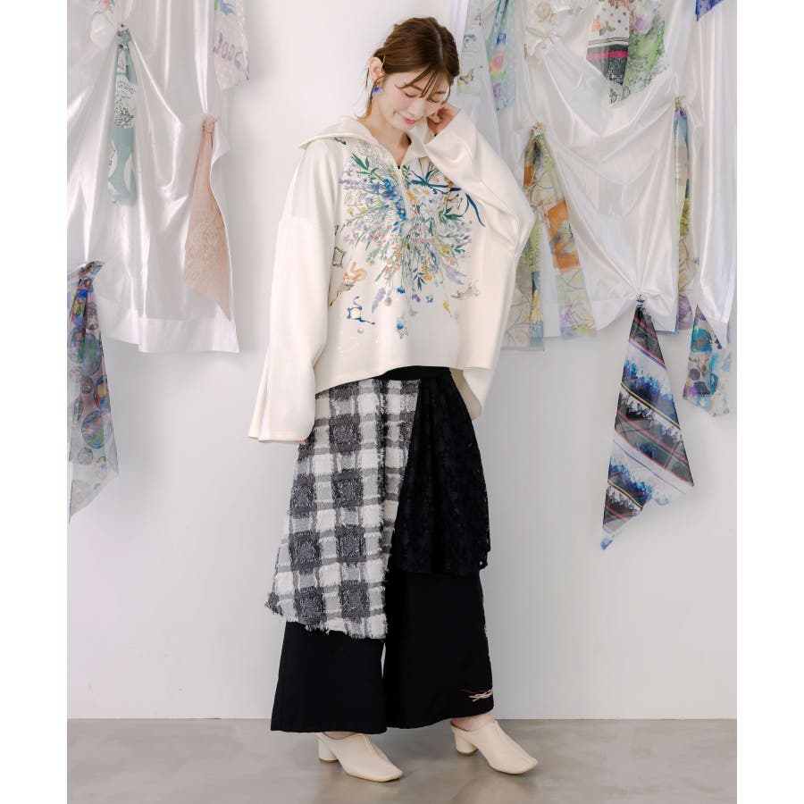 さらに裾にはイズスカラーらしい可憐なお花のブーケ刺繍をプラス。