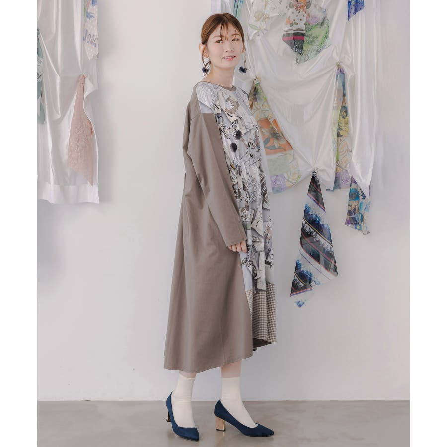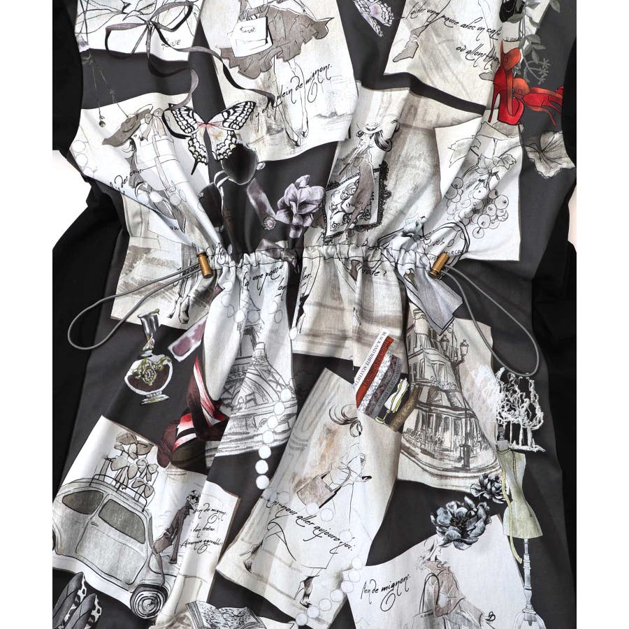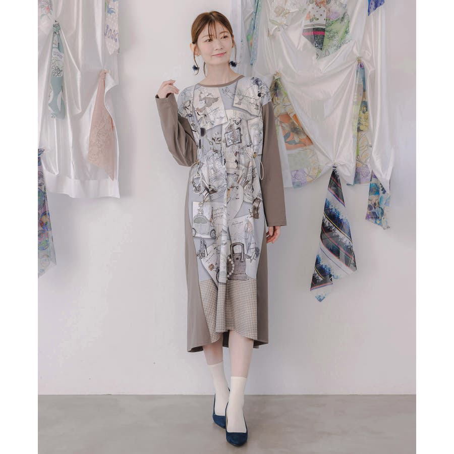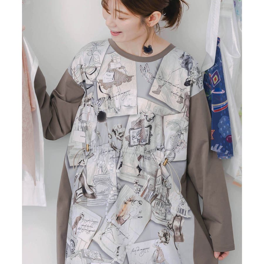 お買い物大好き女子のコラージュ柄ワンピース