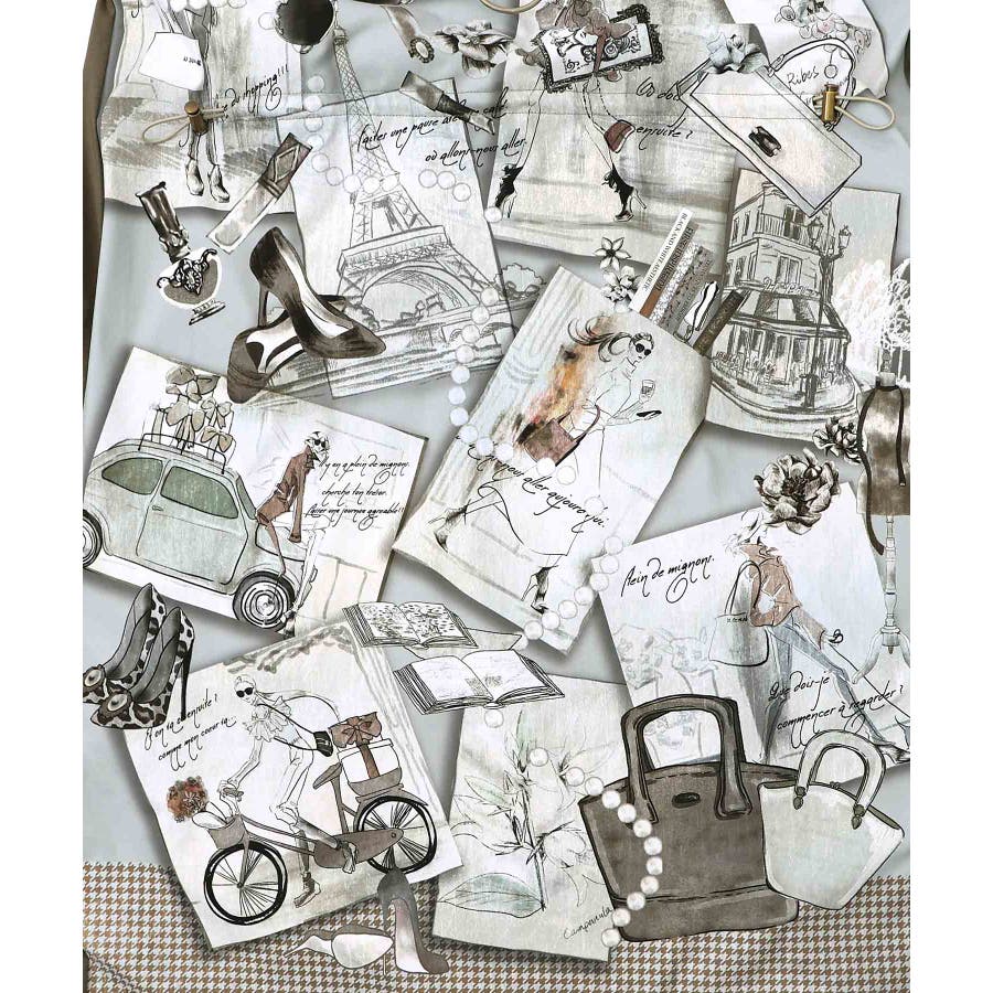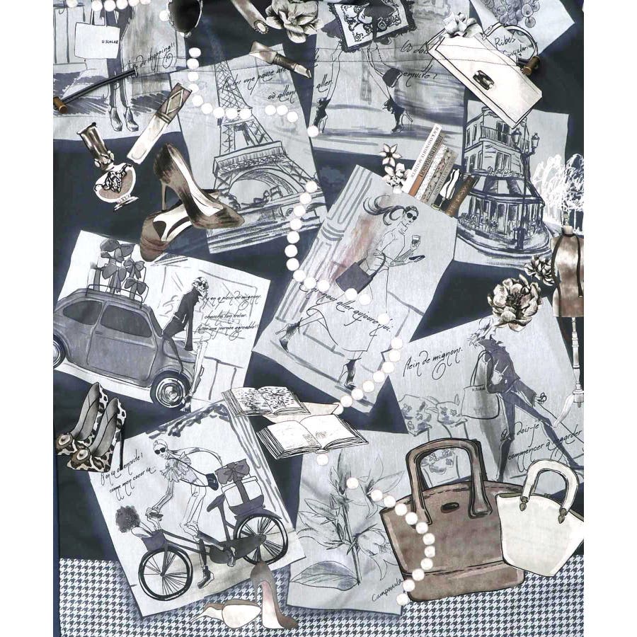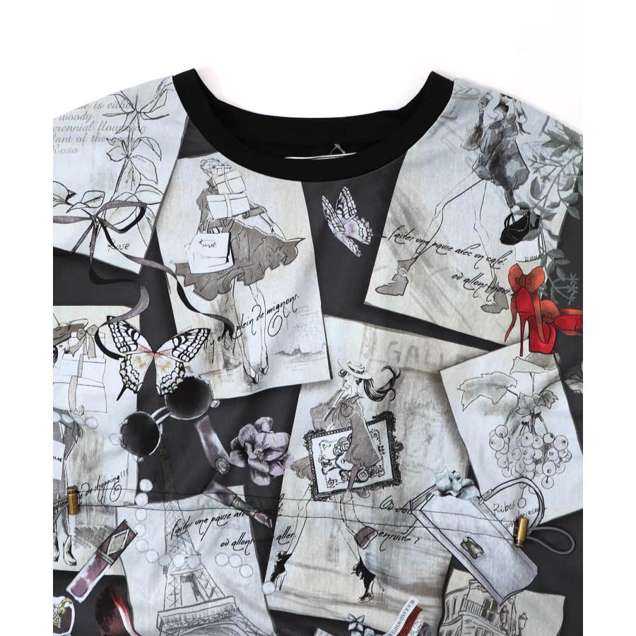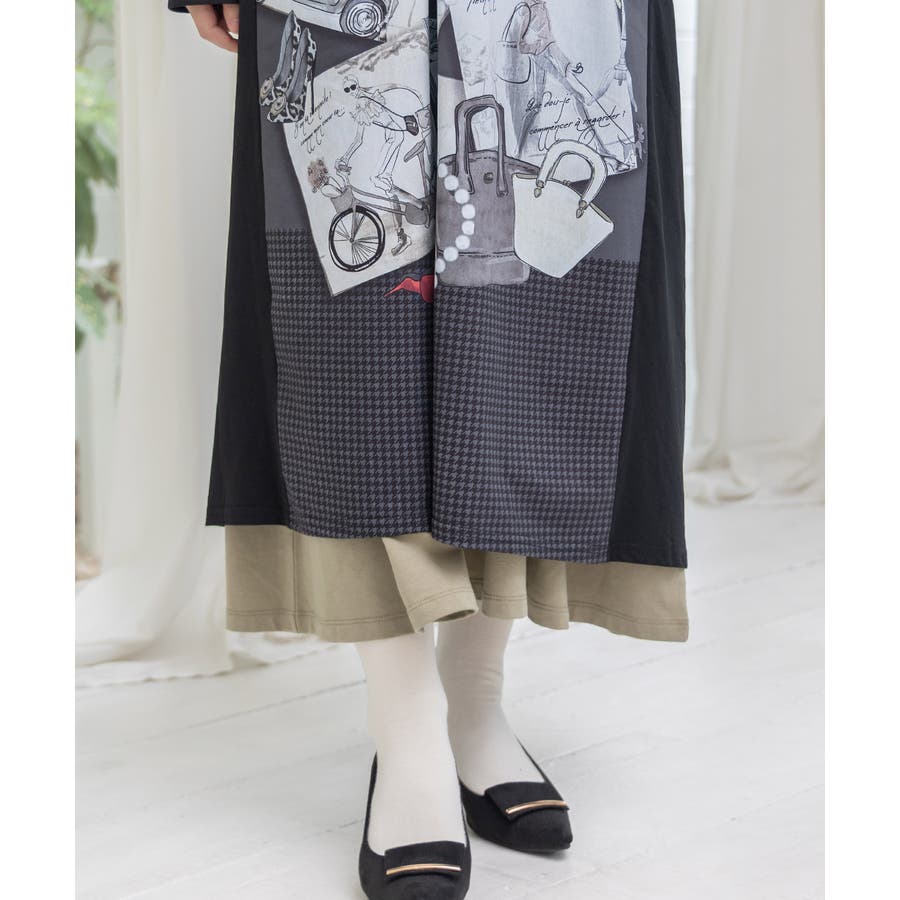 お買い物大好き女子のコラージュ柄ワンピース