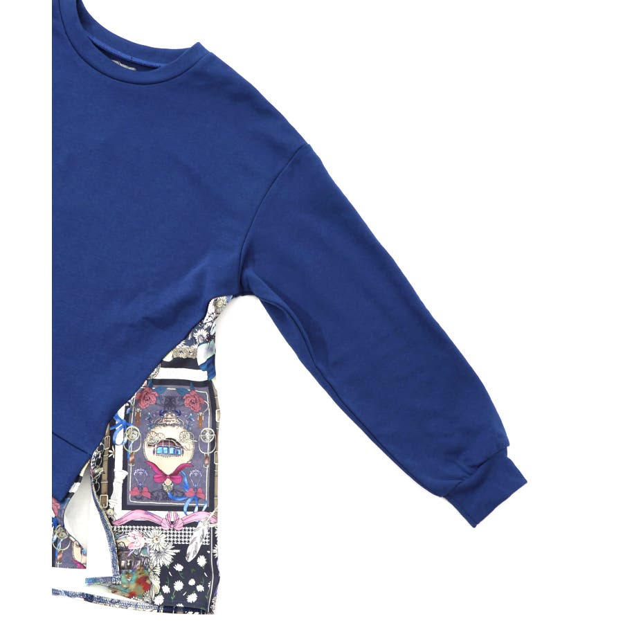 アンティーク調な総柄の布帛生地を切り替えた上品な印象のプルオーバー。
