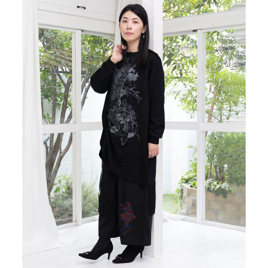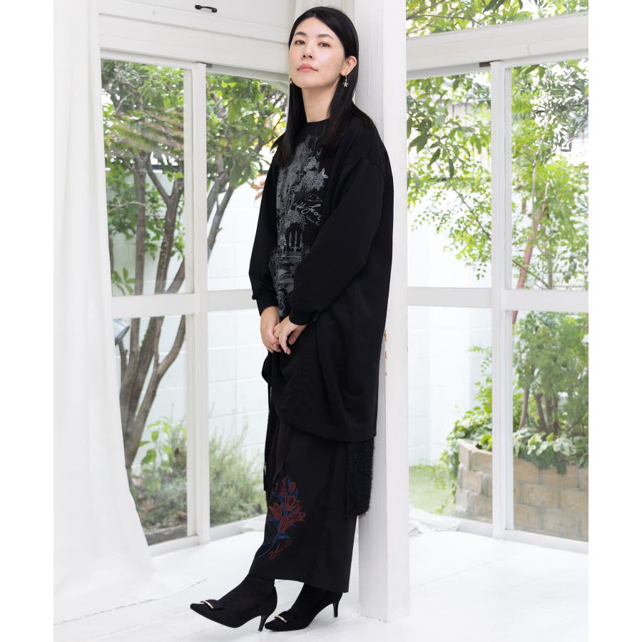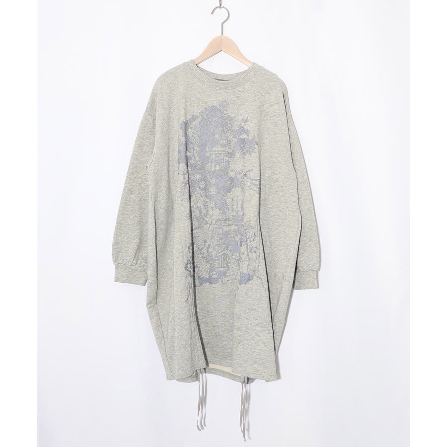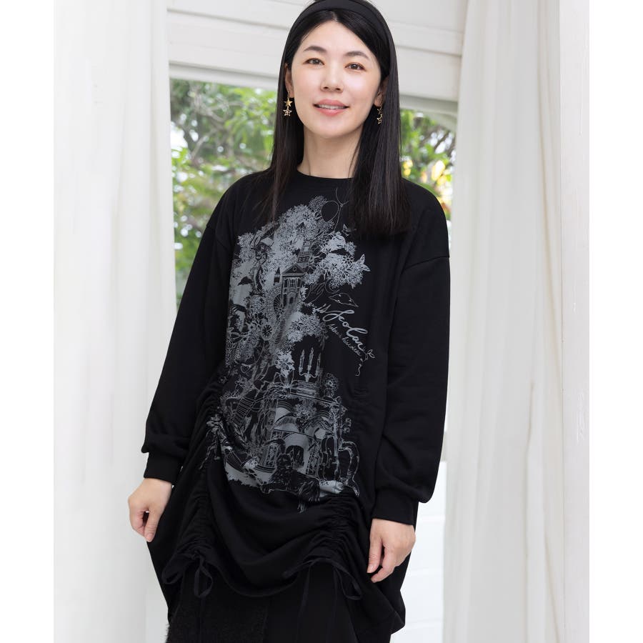 ツリーハウス柄裏毛×裾ドロストワンピース