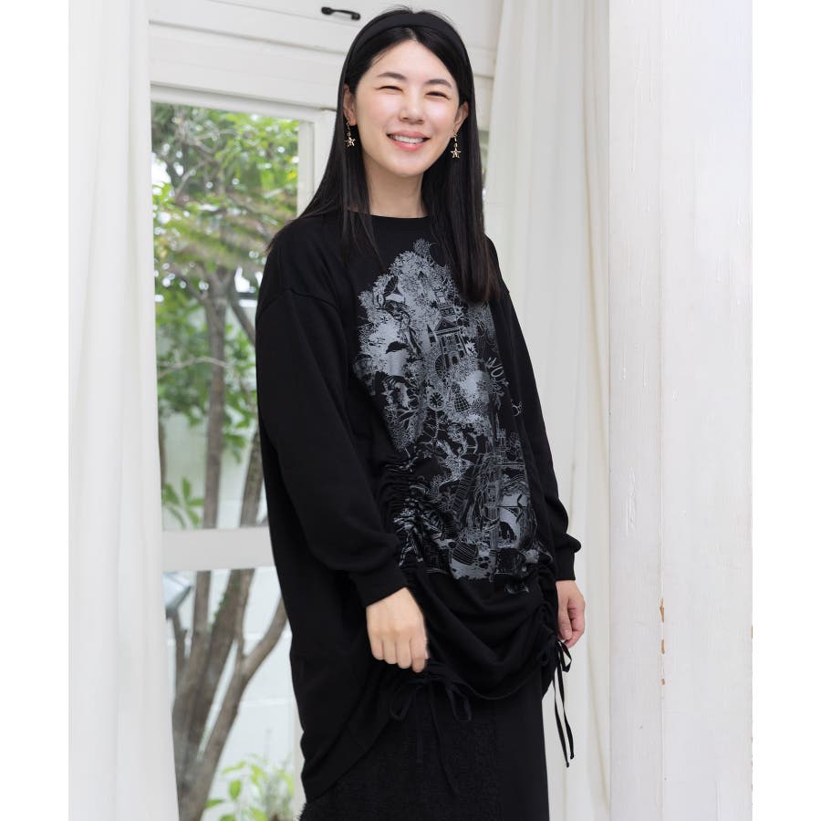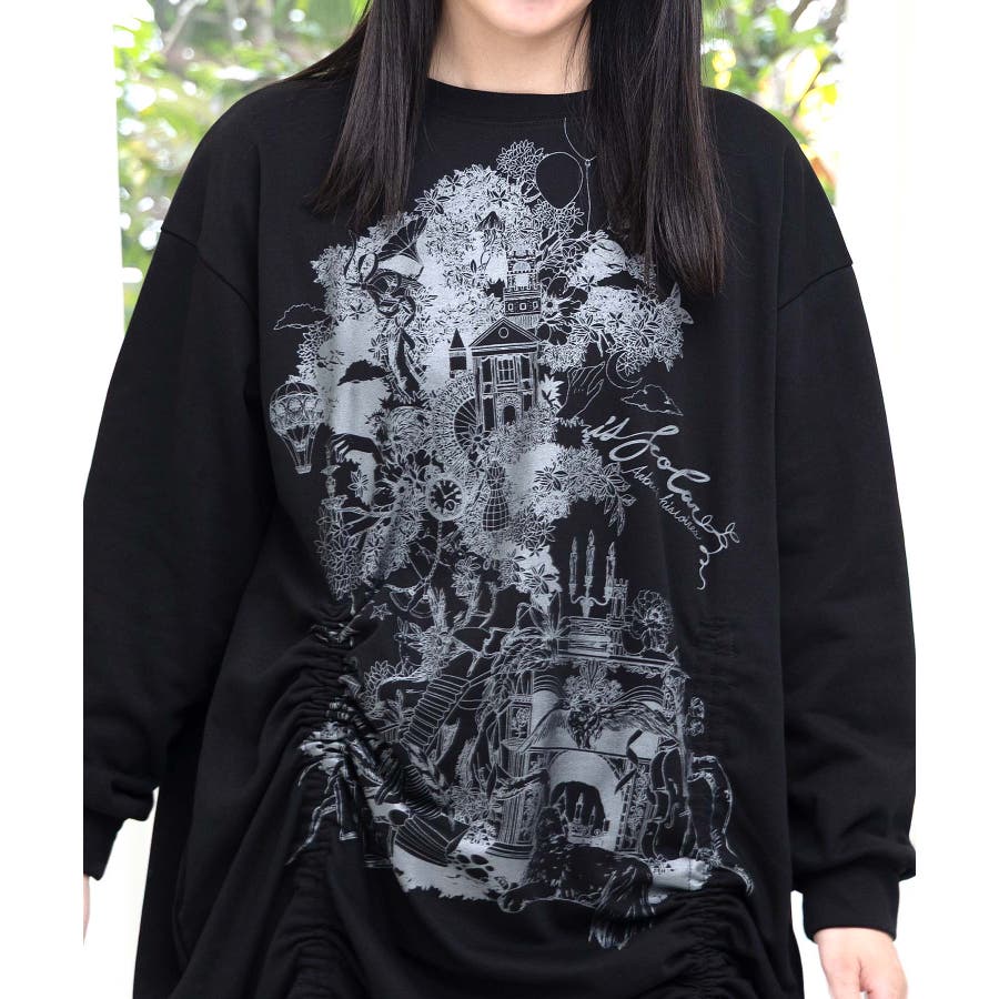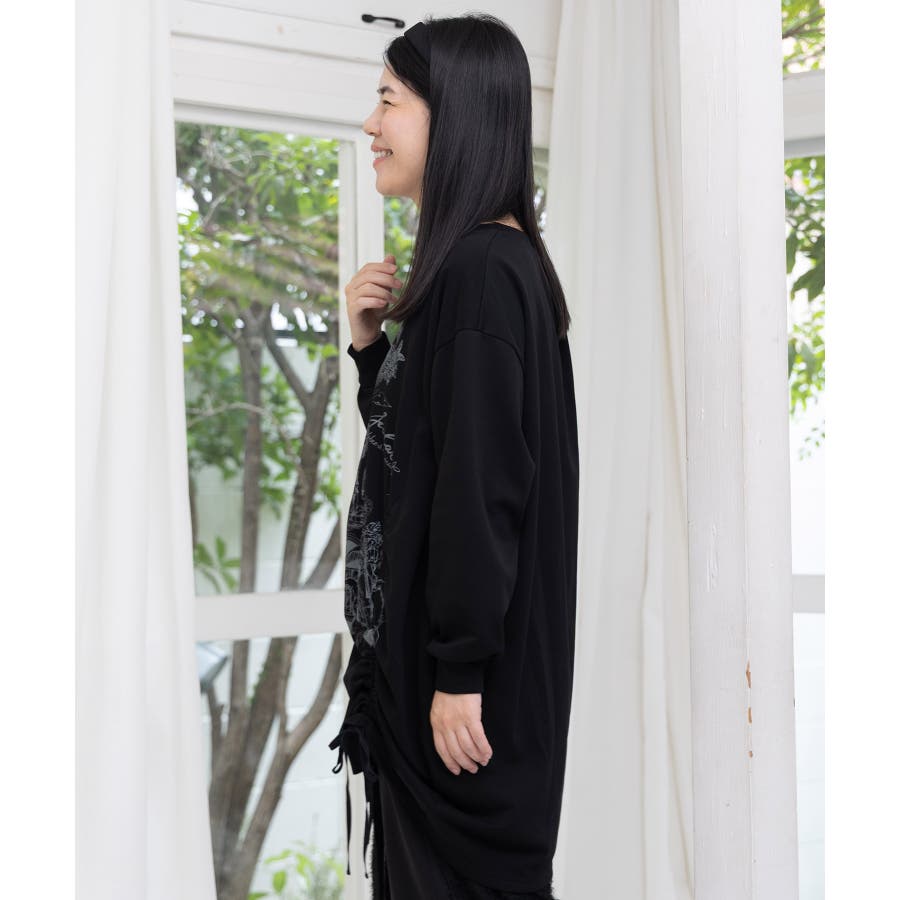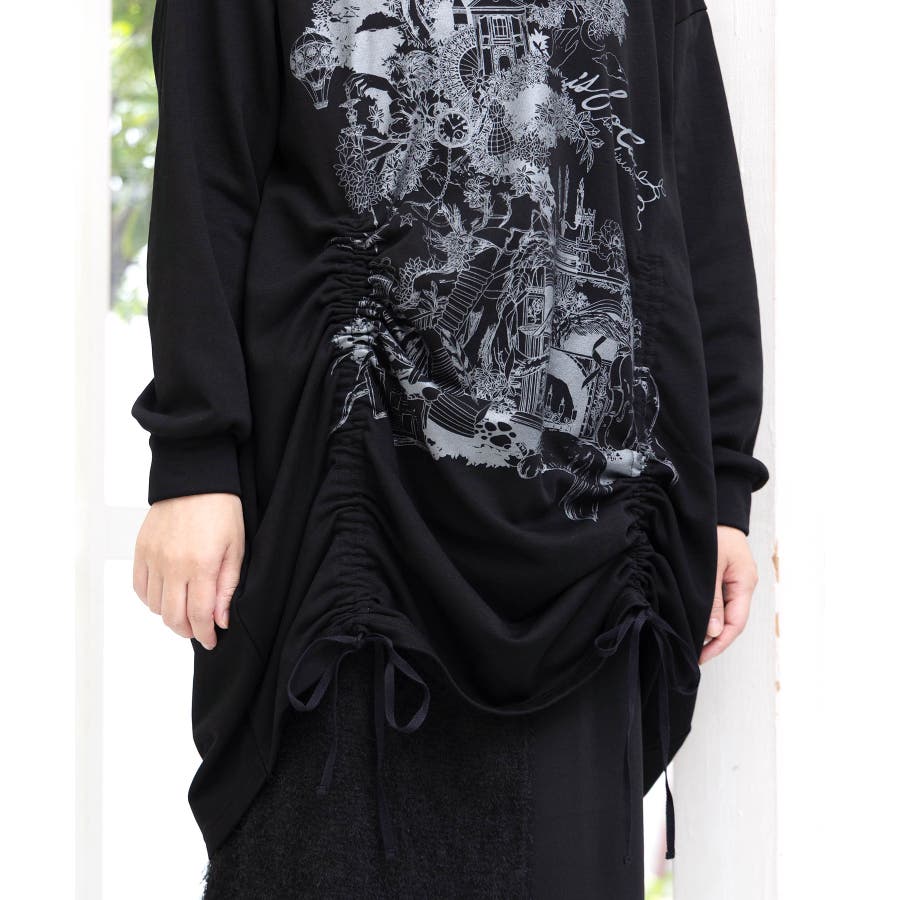 ツリーハウス柄裏毛×裾ドロストワンピース