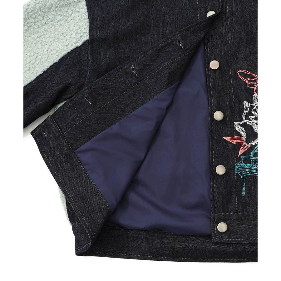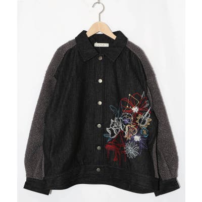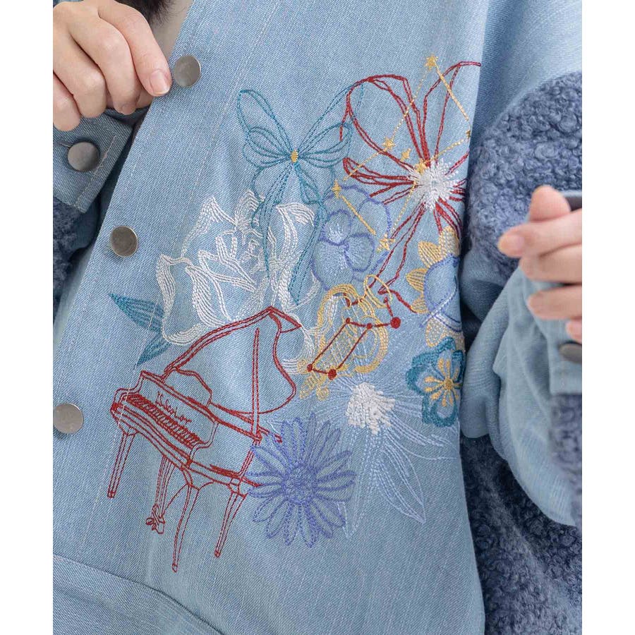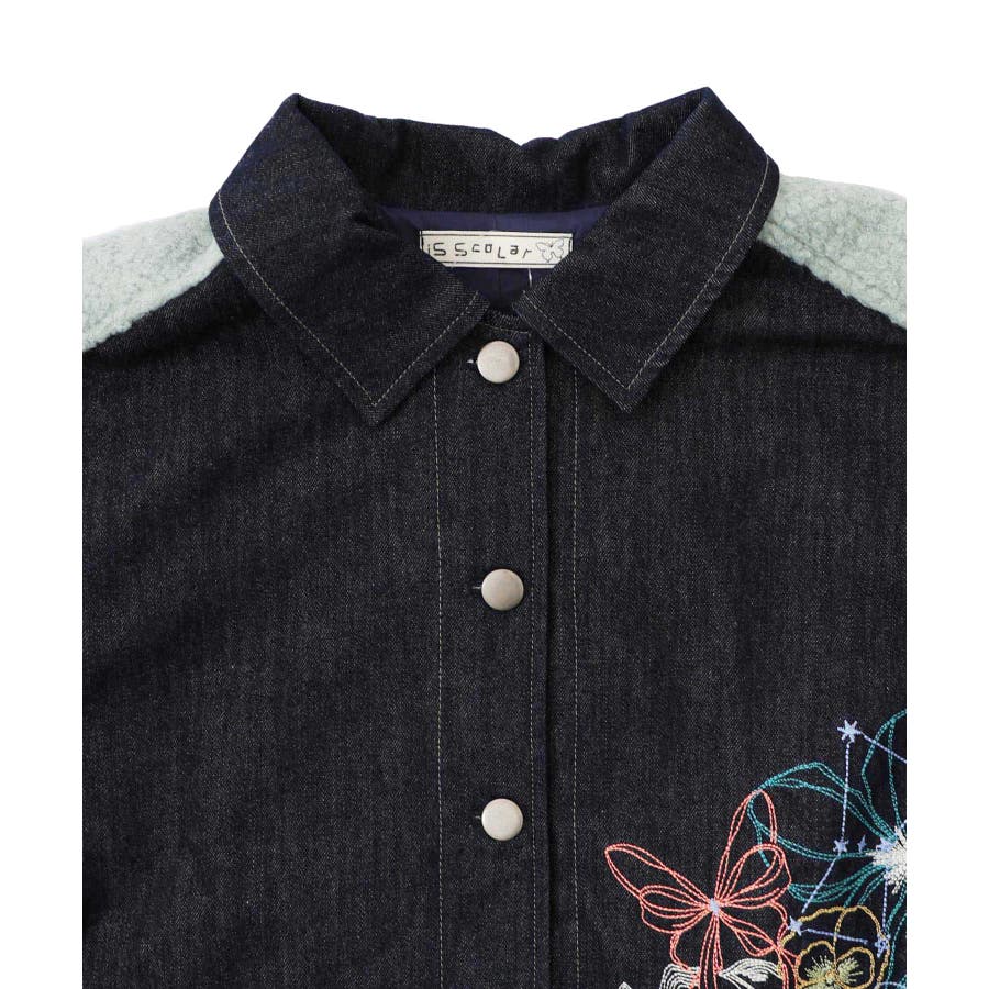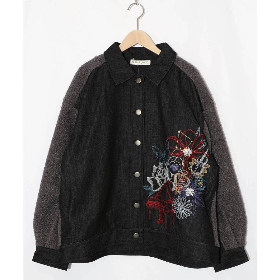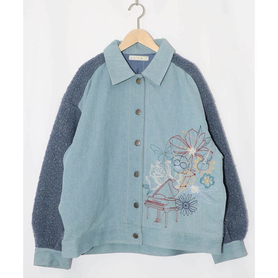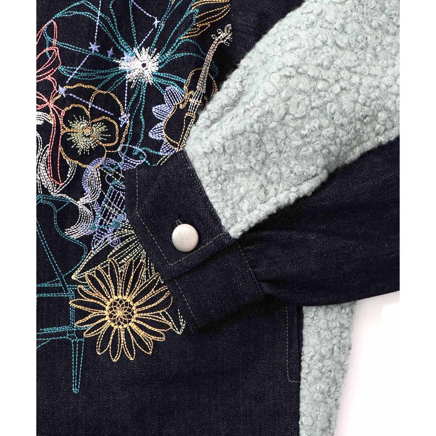 花蝶刺繍デニム×プードルボア 切替ジャケット