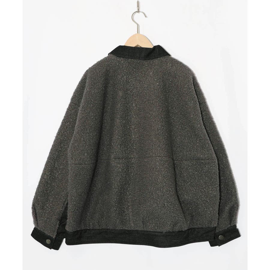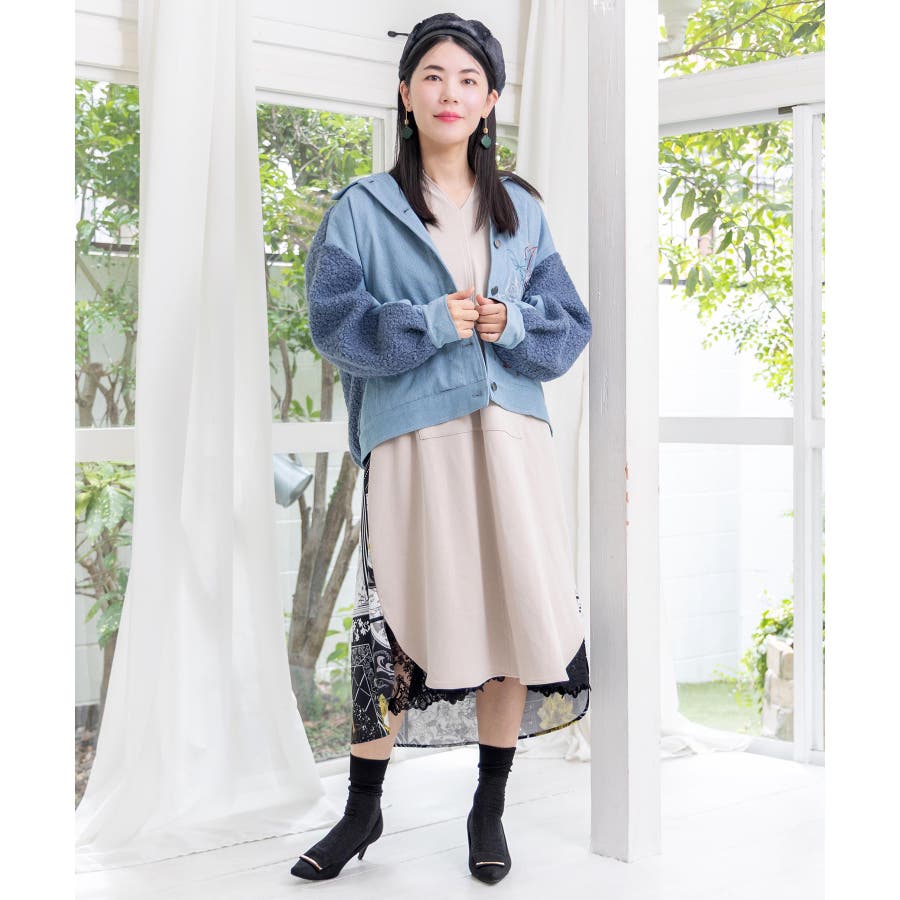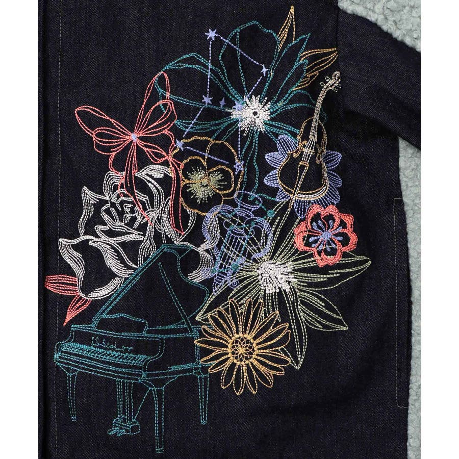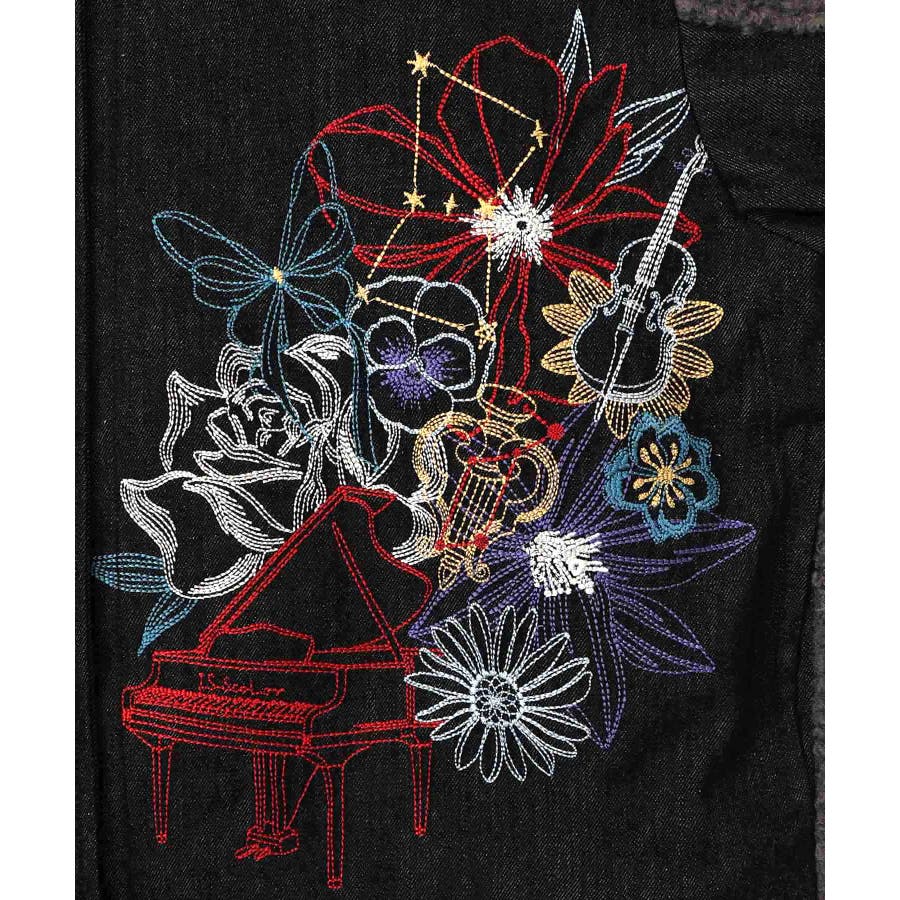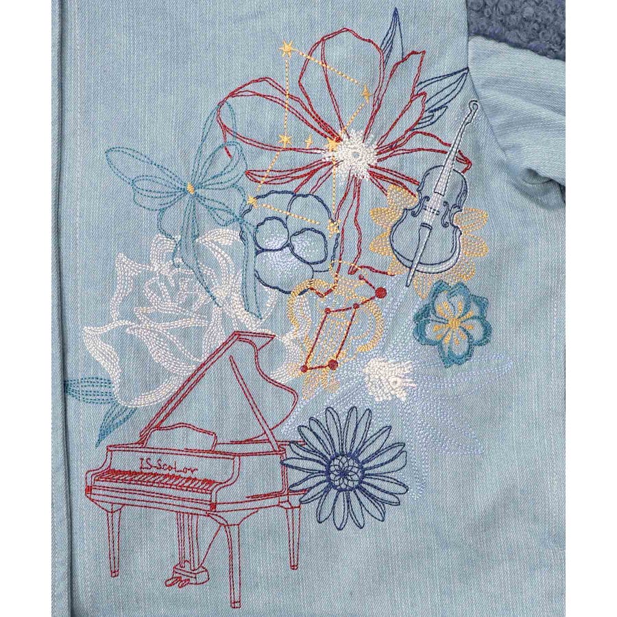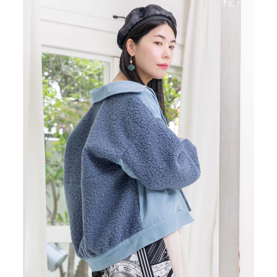 花蝶刺繍デニム×プードルボア 切替ジャケット