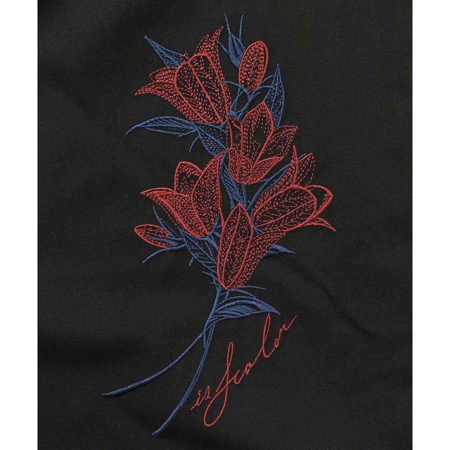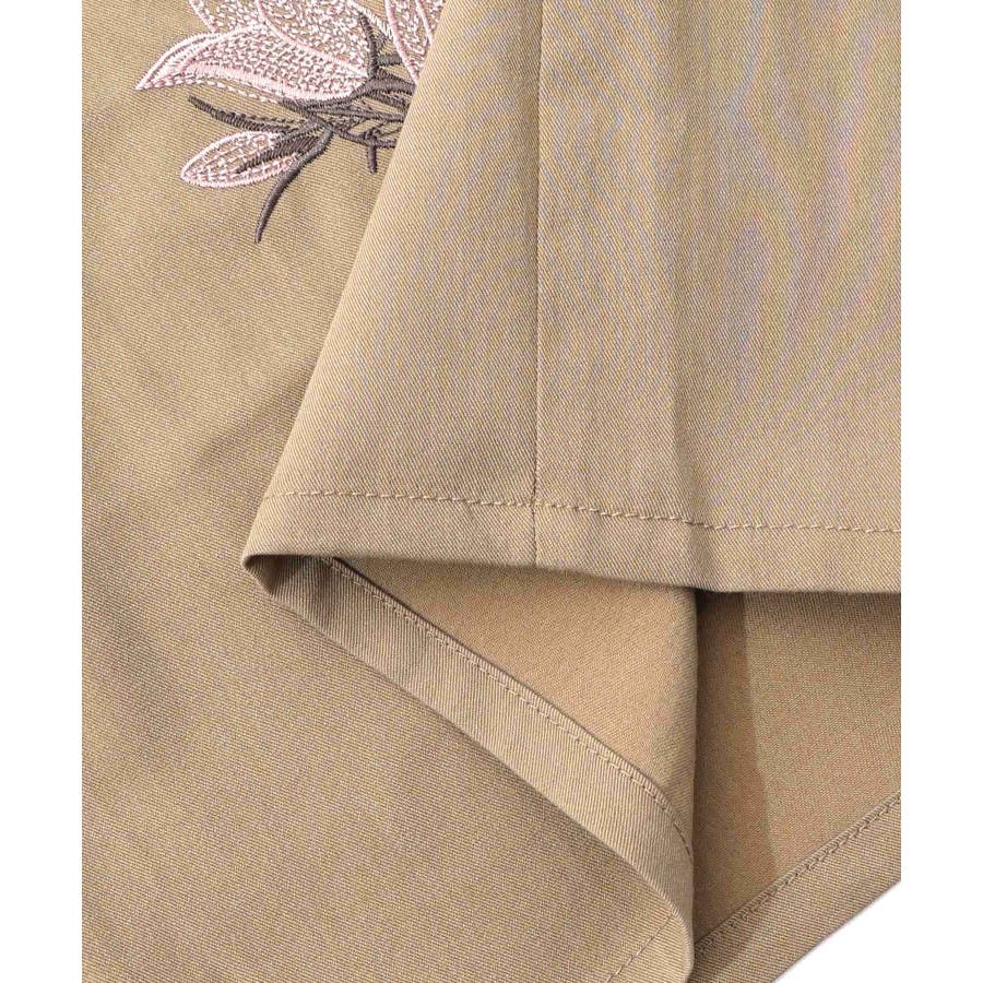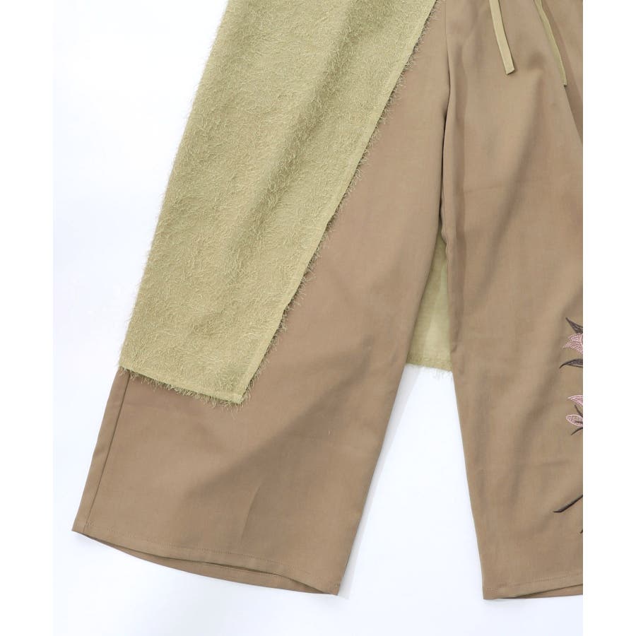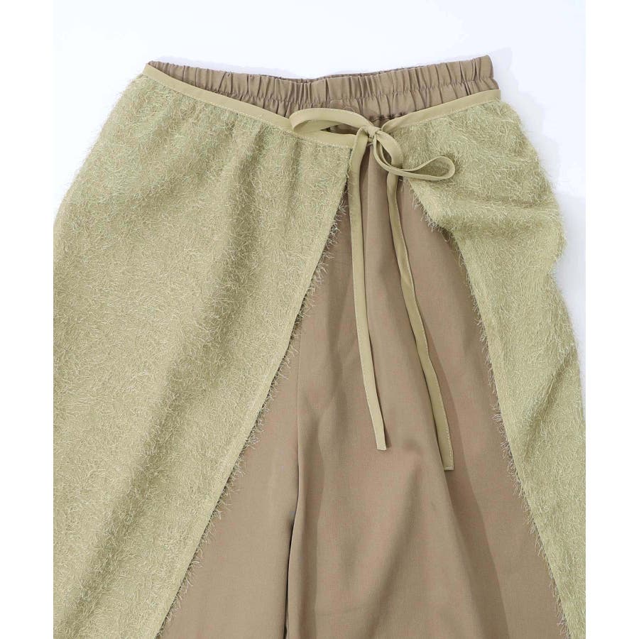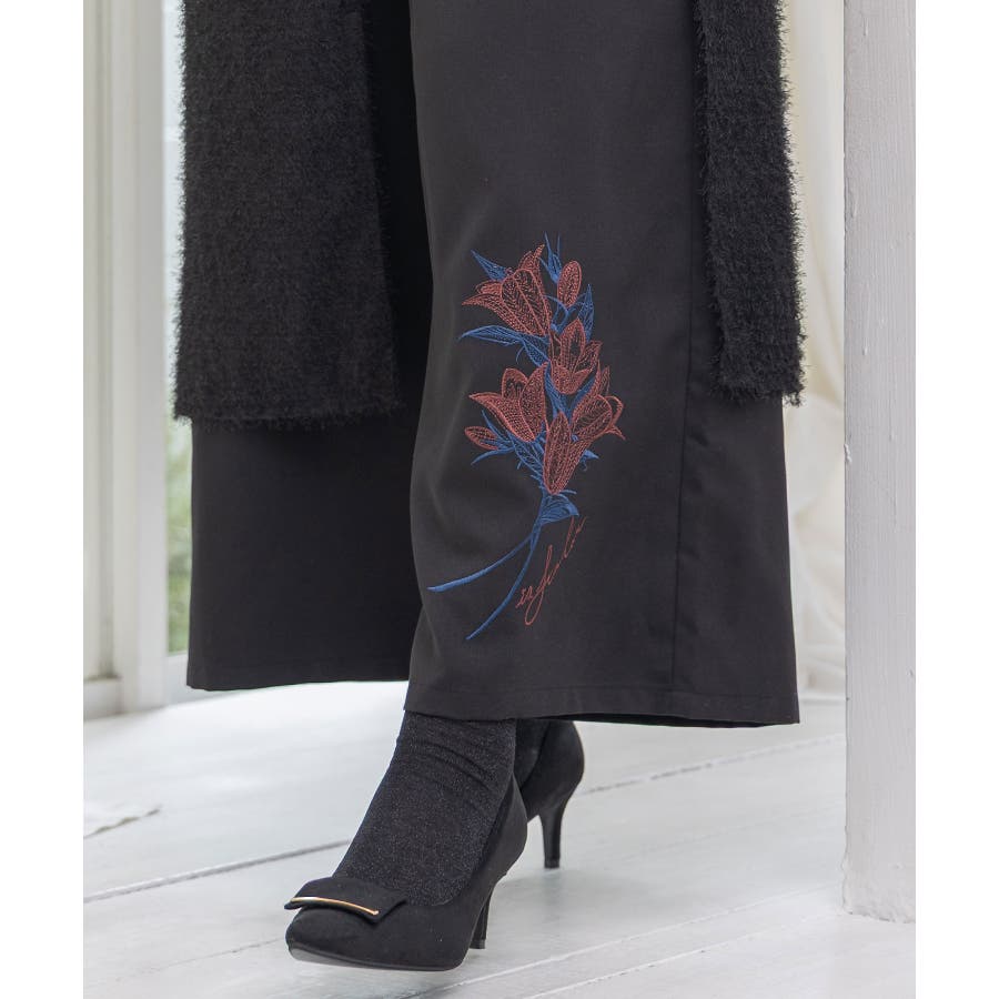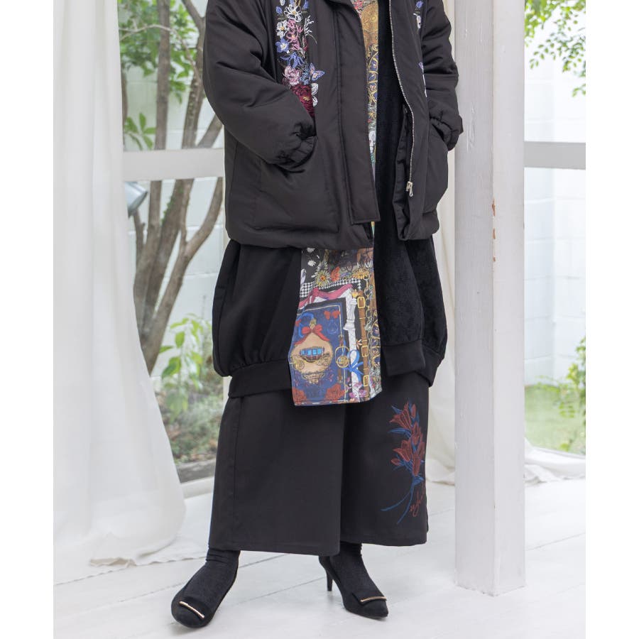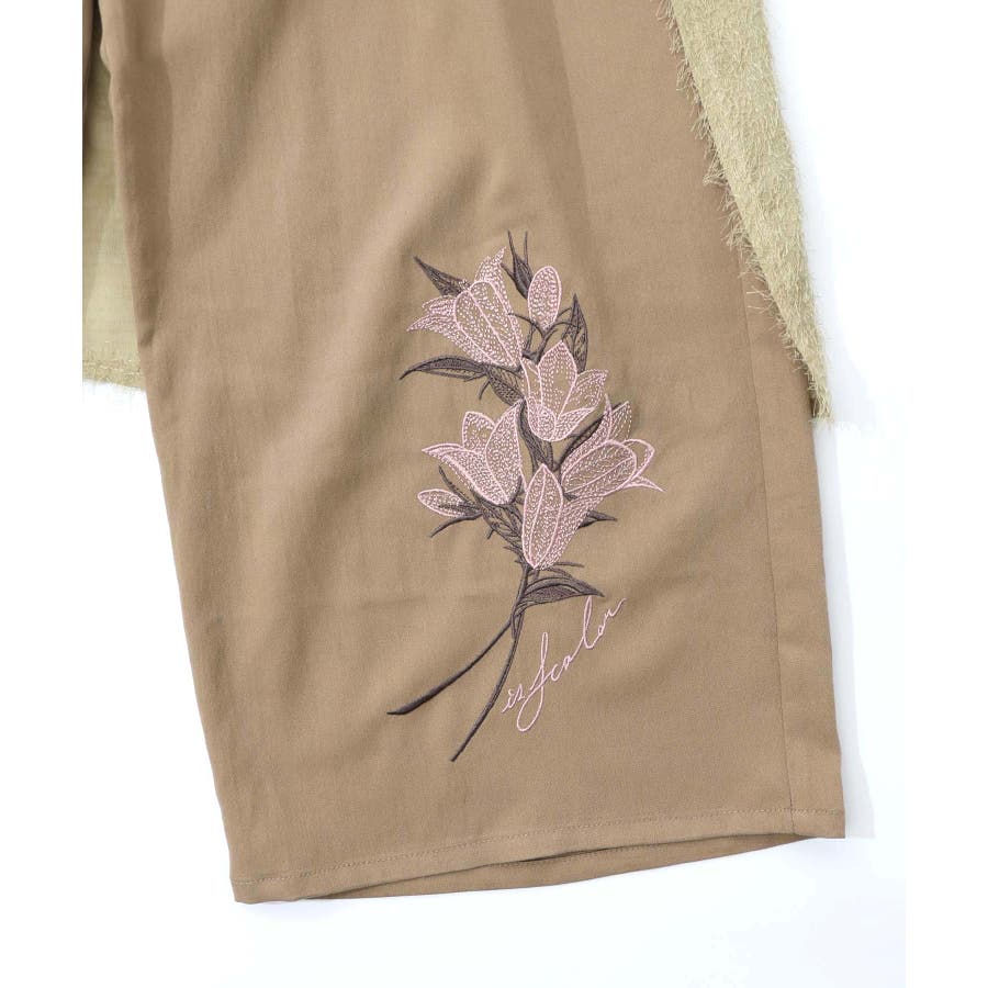 フリンジシフォン巻きスカート付き花刺繍パンツ