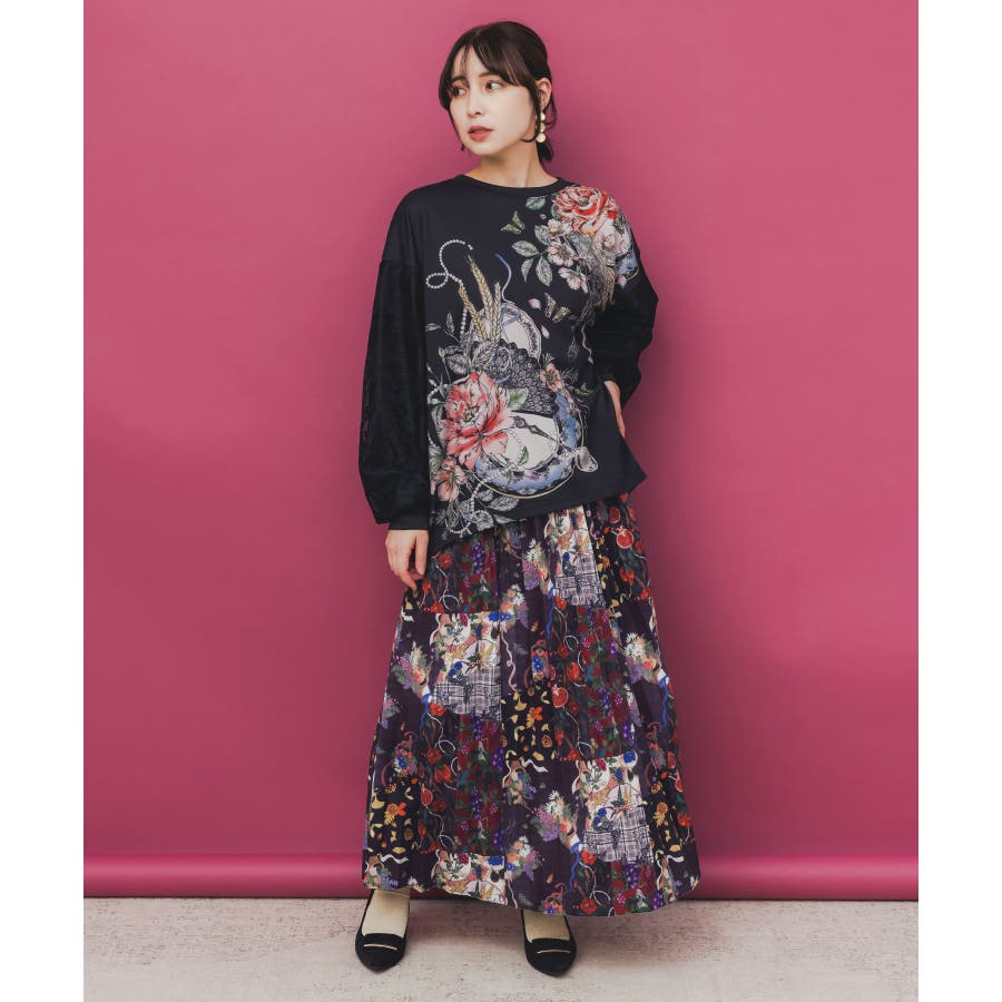 まるで宝箱をそっと開いたように、“好き”をたくさん散りばめた異素材切り替えプルオーバー。